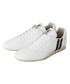本日は新作『CALLACLE_WHT』を履いてみました。 少し丸みのあるフォルム、白いアッパーに トリコロールの2本ラインが映えますね シンセティックレザーを使っているので 雨の日も重宝します。 このシンプルなカラーに合わせて トップスもボーダーTシャツでシンプルに