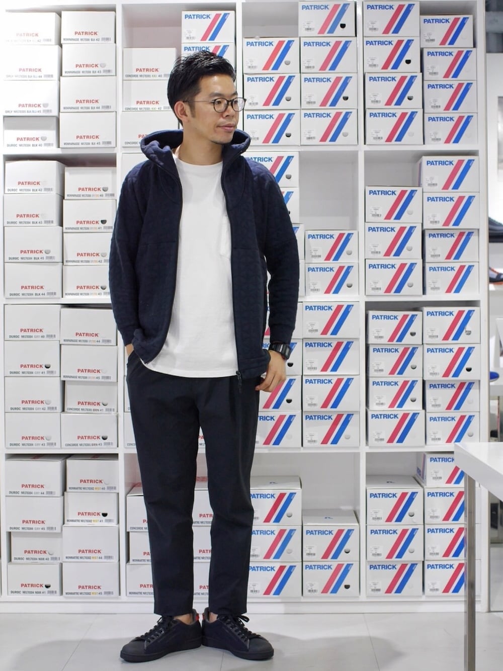パーカーを使ったモノトーンコーデ。 今回はジャケットとのセットアップよりも、パーカーで少しラフな雰囲気に♪ 足元もオールブラックで決まり👍🏻