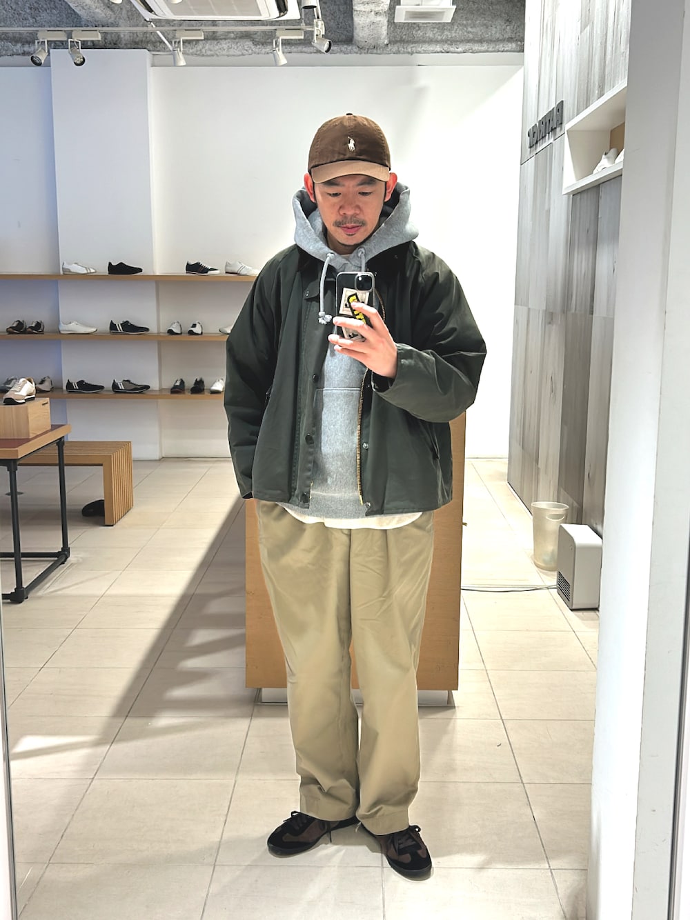 きっちりなキレイめコーデであわせるバブアーも好きですが、パーカーの上から羽織るラフなスタイルも好きです😎