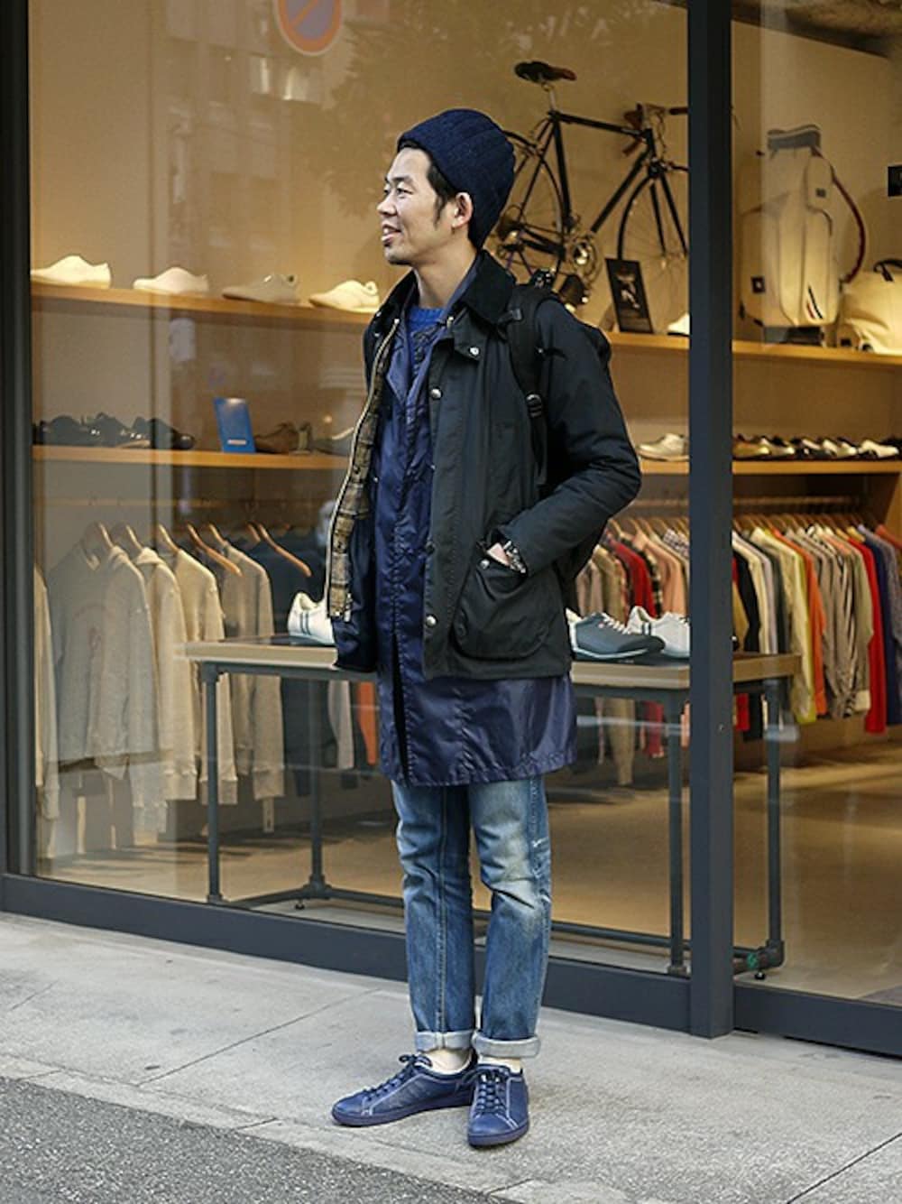 本日の出勤スタイルは、懲りずにネイビーコーデ!!笑 春先には羽織るのに丁度イイ「ステンカラーコート」をアクセントとして、 インナーに着てみました。 そして足元も、懲りずに「PUNCH14(パンチ14)」。 2015SSの限定カラーです!!