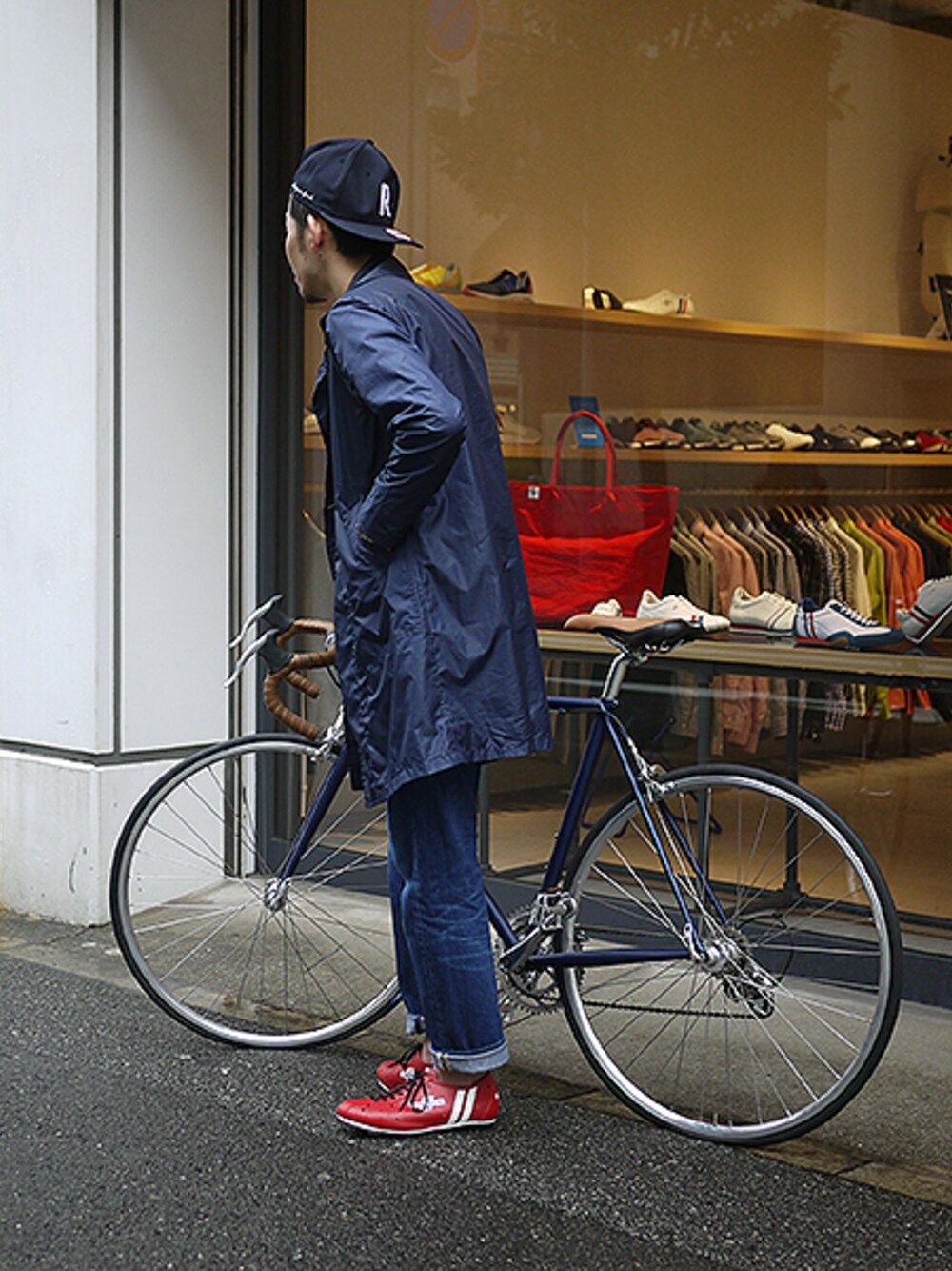 labo_matsuのステンカラーコート「ステンカラーコート_NVY」を使ったコーディネート