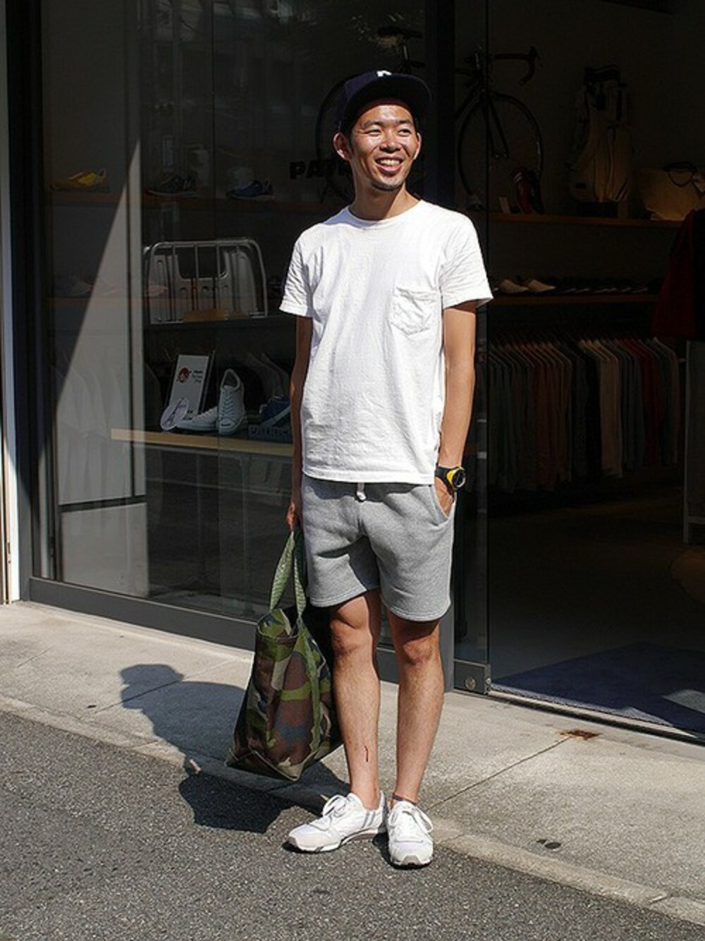 お久しぶりですっ!! 久々の投稿になてしまいました・・・ 白をベースにラフコーデ♪♪ こんだけ暑いと、長パンツも穿いてられません。もう半パンが欠かせません!! 最近はロードバイクにすっかりハマッてしまって、いい感じに焼けてきました。笑 より白コーデが際立ちます!笑 因みに、このホワイトスニーカー・・・とっても履きやすく疲れ知らず!! これは本当にオススメの一足なので、是非試して頂きたいですね。