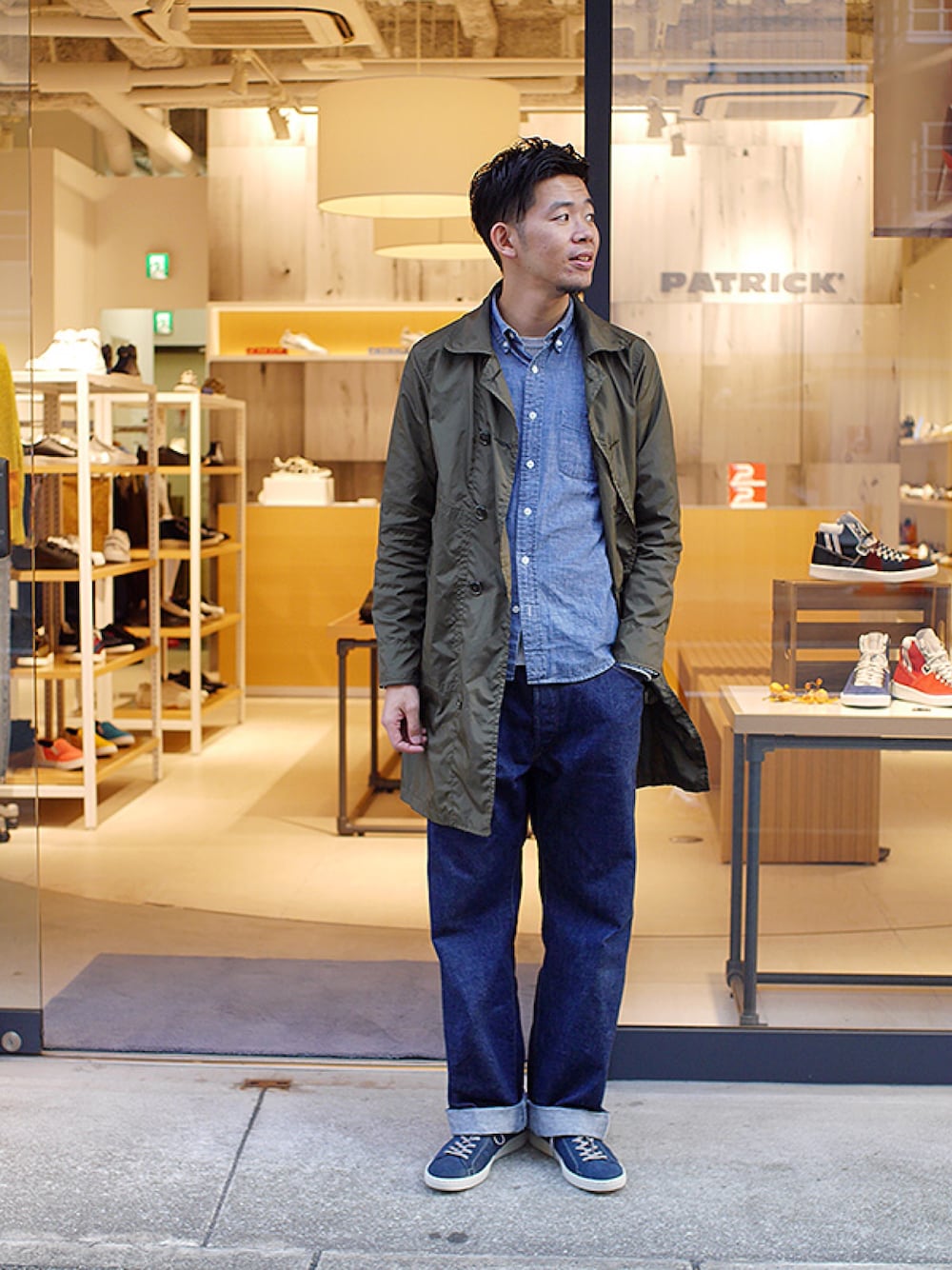 ネイビーコーデに、カーキのコートをプラスしてみました! 渋さのある大人カジュアルスタイルに(^^)