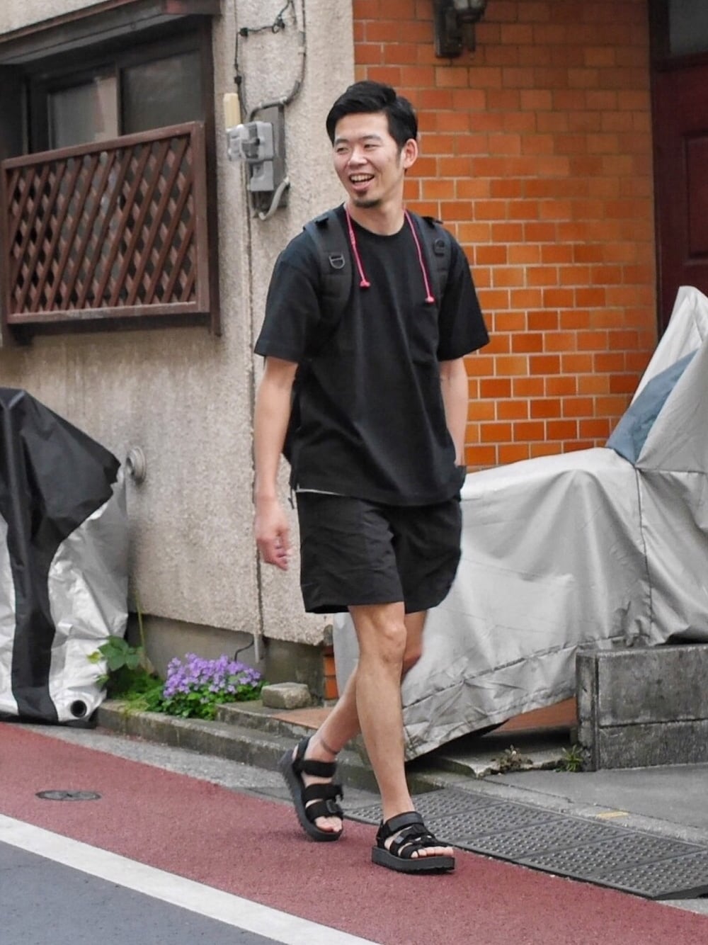 夏スタイル解禁!! サンダルも含めて、すべてオールブラック😎
