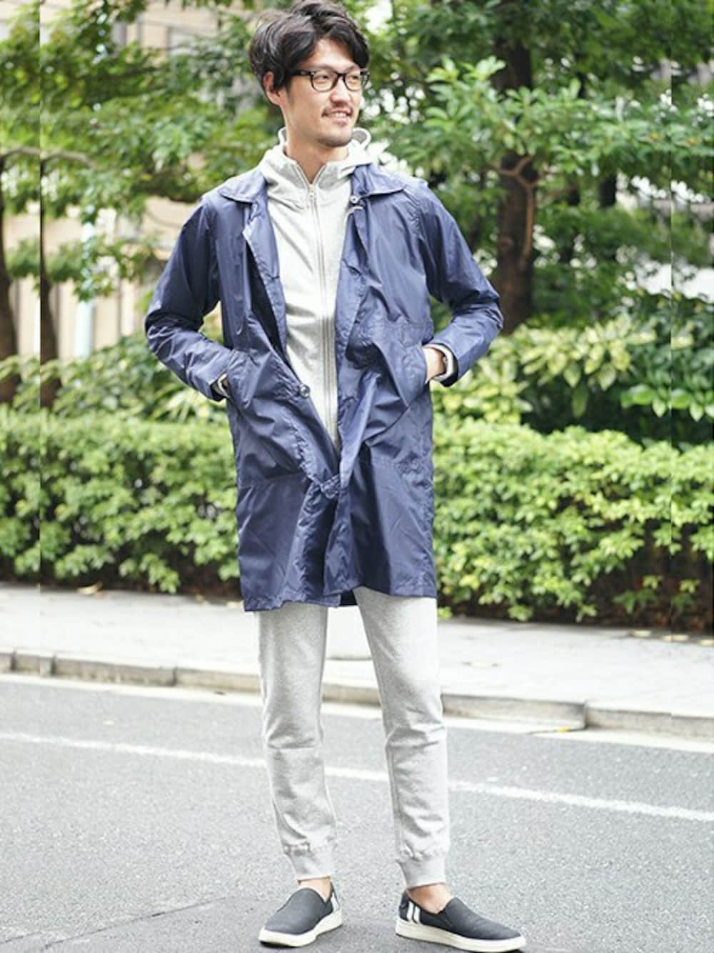 スエットのセットアップに、ステンカラーコートをコーディネートしました。 スエットはキレイな細身のシルエットです。 ネイビーとグレーの色合わせが好きなのは、私だけではないですよね♪