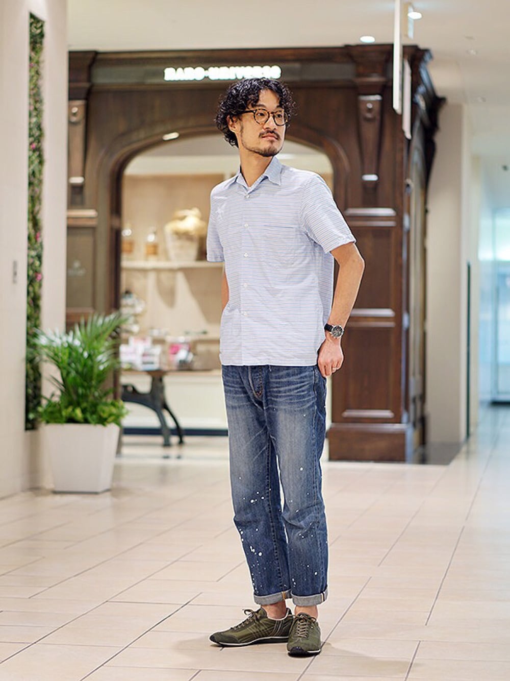 トレンドカラーのカーキを足元に置きコーディネートしました!