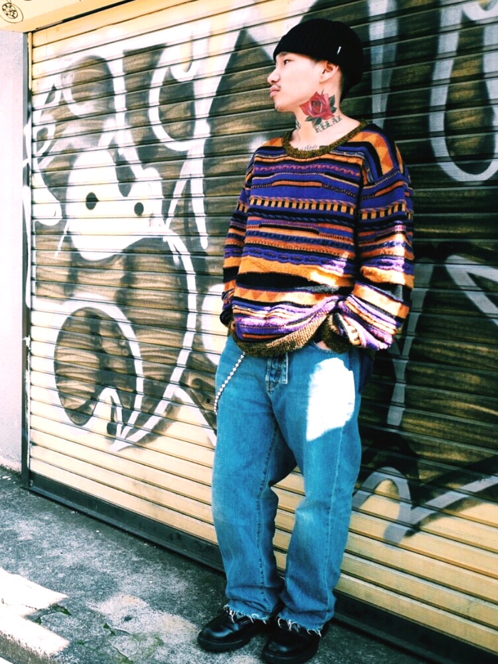 LEGENDA_TOKYOのニット/セーター「3D CRAZY PATATER ルーズシルエットクルーネックニット」を使ったコーディネート