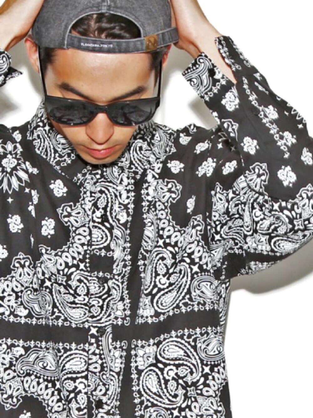 LEGENDA_TOKYOのシャツ/ブラウス「WHATEVER バンダナ柄ロングシャツ」を使ったコーディネート