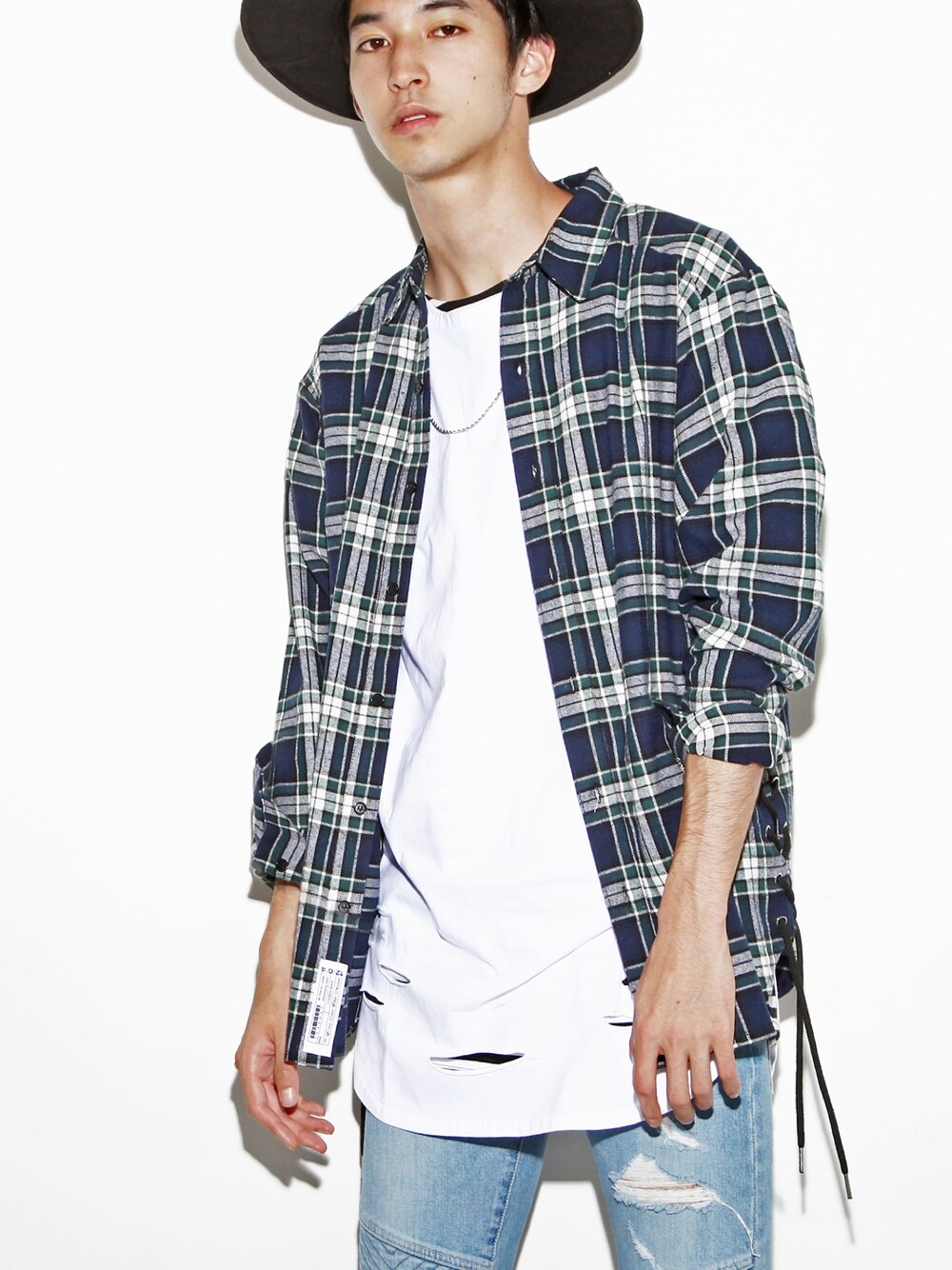 LEGENDA_TOKYOのシャツ/ブラウス「SIDE LACED チェックシャツ」を使ったコーディネート