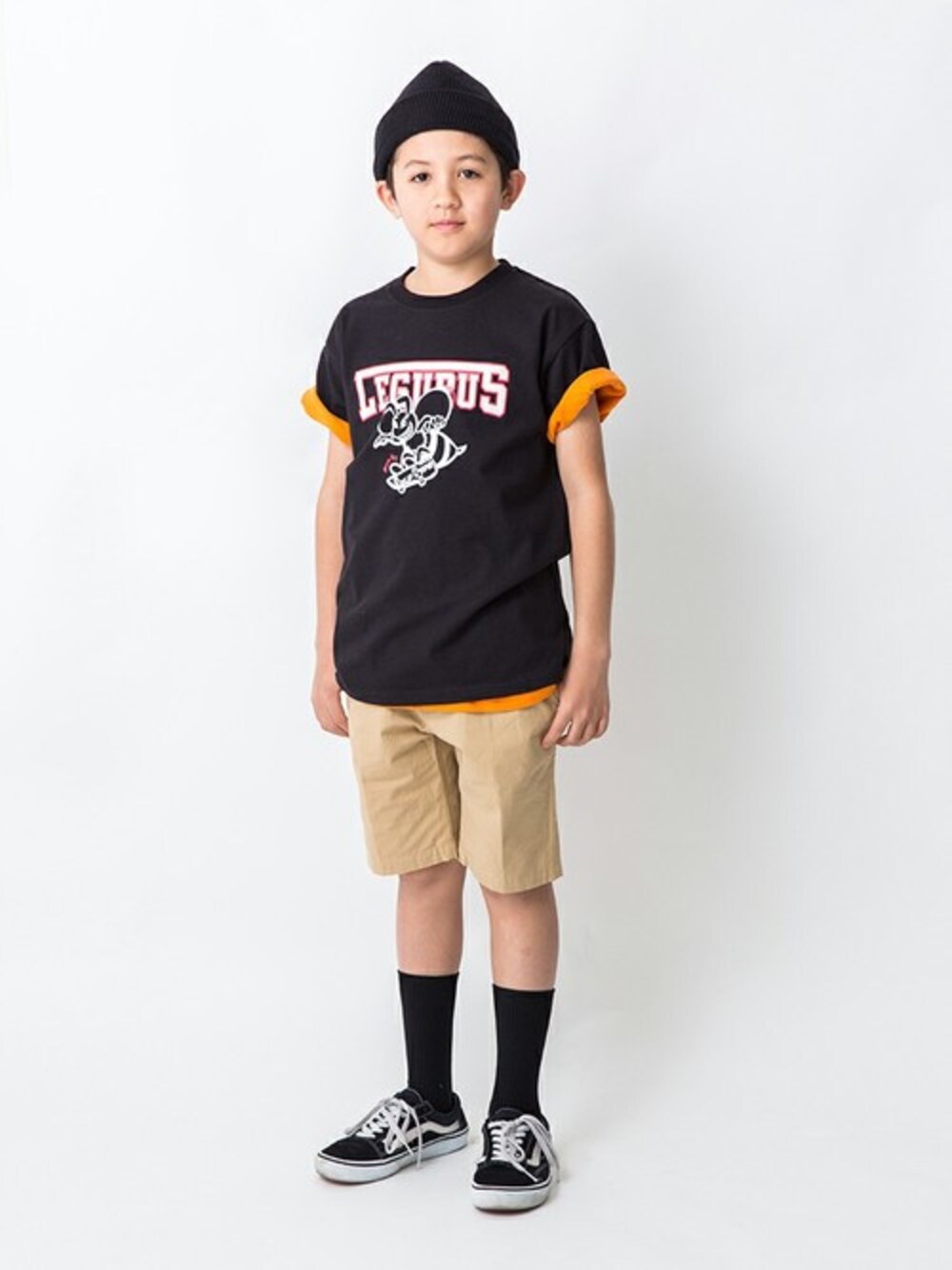 ニューウェーブを起こす次世代のジュニアに向けたファッションブランド『LEGURUS STANDARD』 Skate Beeプリント。 ゆったりしたシルエットにオリジナルのキャラクターがプリント。 スポーツミックスなスタイリングに。 衿元以外は、ワンサイズ大きめに近いシルエット。 ジャストサイズを選択していただいても長くお使いいただけます。 160サイズはママも着用できるサイズ。 親子でお揃いコーデも楽しめます。 もちろん女の子もOKです! サイズ展開:130~160 身長:139cm 着用:140cm