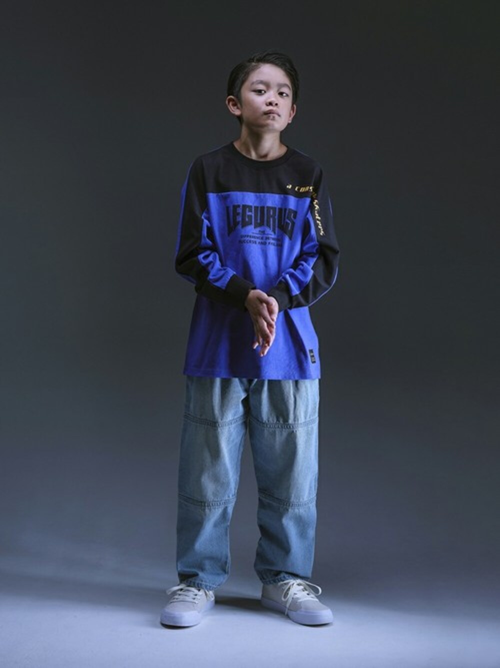 ニューウェーブを起こす次世代のジュニアに向けたファッションブランド『LEGURUS STANDARD』 “ワイドデニムパンツ” ストリートコーデには欠かせないアイテム!! どんなアイテムにも合わせやすい☆☆ Sサイズ:135~145cm相当 Mサイズ:145~155cm相当 Lサイズ:155~165cm相当 身長:143cm 着用:Sサイズ
