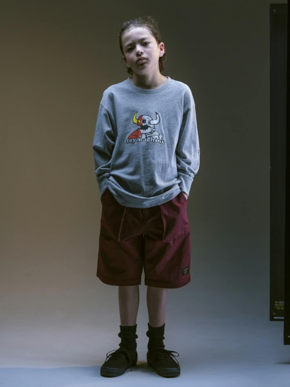 ニューウェーブを起こす次世代のジュニアに向けたファッションブランド『LEGURUS STANDARD』 【LEGURUS×TOY MACHINEコラボロンT】 空紡糸混を使用したことで一般的なロンTよりも丈夫な素材に仕上がりました。 何度洗ってもくたびれにくく長年着用していただける素材で、 着込んでいくほど風合いが増していきます!! Sサイズ:135~145cm相当 Mサイズ:145~155cm相当 Lサイズ:155~165cm相当 身長:142cm 着用:Sサイズ