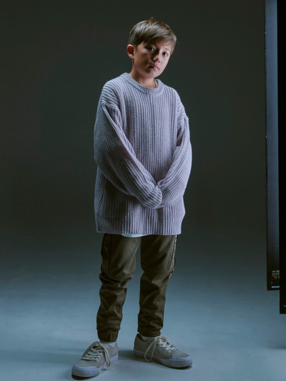 ニューウェーブを起こす次世代のジュニアに向けたファッションブランド『LEGURUS STANDARD』 【ルーズニット】 ストリート感のあるルーズシルエットデザインで旬な着こなしと存在感を発揮するニットセーター。 小柄な方でしたら大人も着用できるサイズになっており、お子さんとお揃いコーデも楽しんでいただけます☆★ Sサイズ:135~145cm相当 Mサイズ:145~155cm相当 Lサイズ:155~165cm相当 身長:135.5cm 着用:Sサイズ