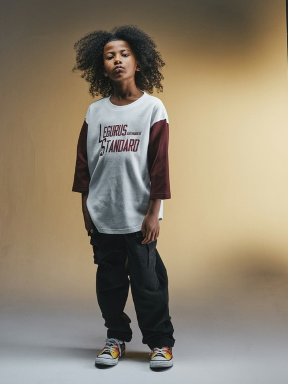 ニューウェーブを起こす次世代のジュニアに向けたファッションブランド『LEGURUS STANDARD』 【ワッフル八分丈Tシャツ】 袖が8分丈なので伸び盛りのお子さまにも安心して長く着てもらえます。 これからの時期にピッタリの肌ざわりで着心地も◎ デニムにも合わせやすいカラーリングです。 Sサイズ:135~145cm相当 Mサイズ:145~155cm相当 Lサイズ:155~165cm相当 身長:135.5cm 着用:Sサイズ