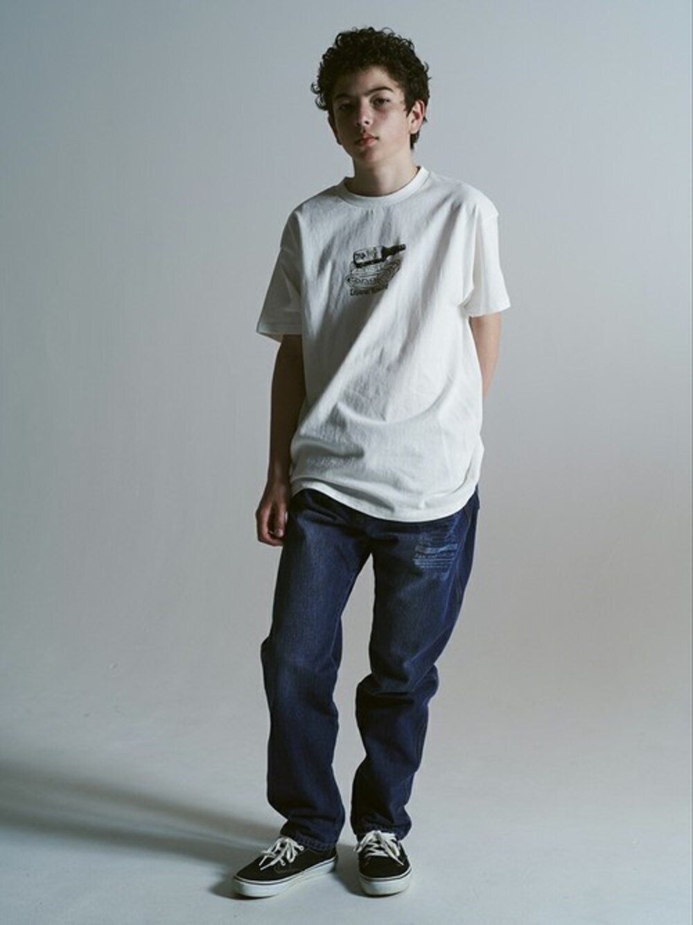 ニューウェーブを起こす次世代のジュニアに向けたファッションブランド『LEGURUS STANDARD』 【ボトル戦車Tシャツ】 空紡糸混を使用したことで一般的なTシャツよりも丈夫な、長年着用していただける素材に仕上がりました。 ボトル洗車のイラストプリントが程よく抜け感のある1着です。 Sサイズ:135~145cm相当 Mサイズ:145~155cm相当 Lサイズ:155~165cm相当 身長:160cm 着用:Lサイズ