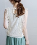 Bou Jeloudのシャツ/ブラウス「レースライン ノースリーブスタンドカラー切替シャツブラウス」を使ったコーディネート