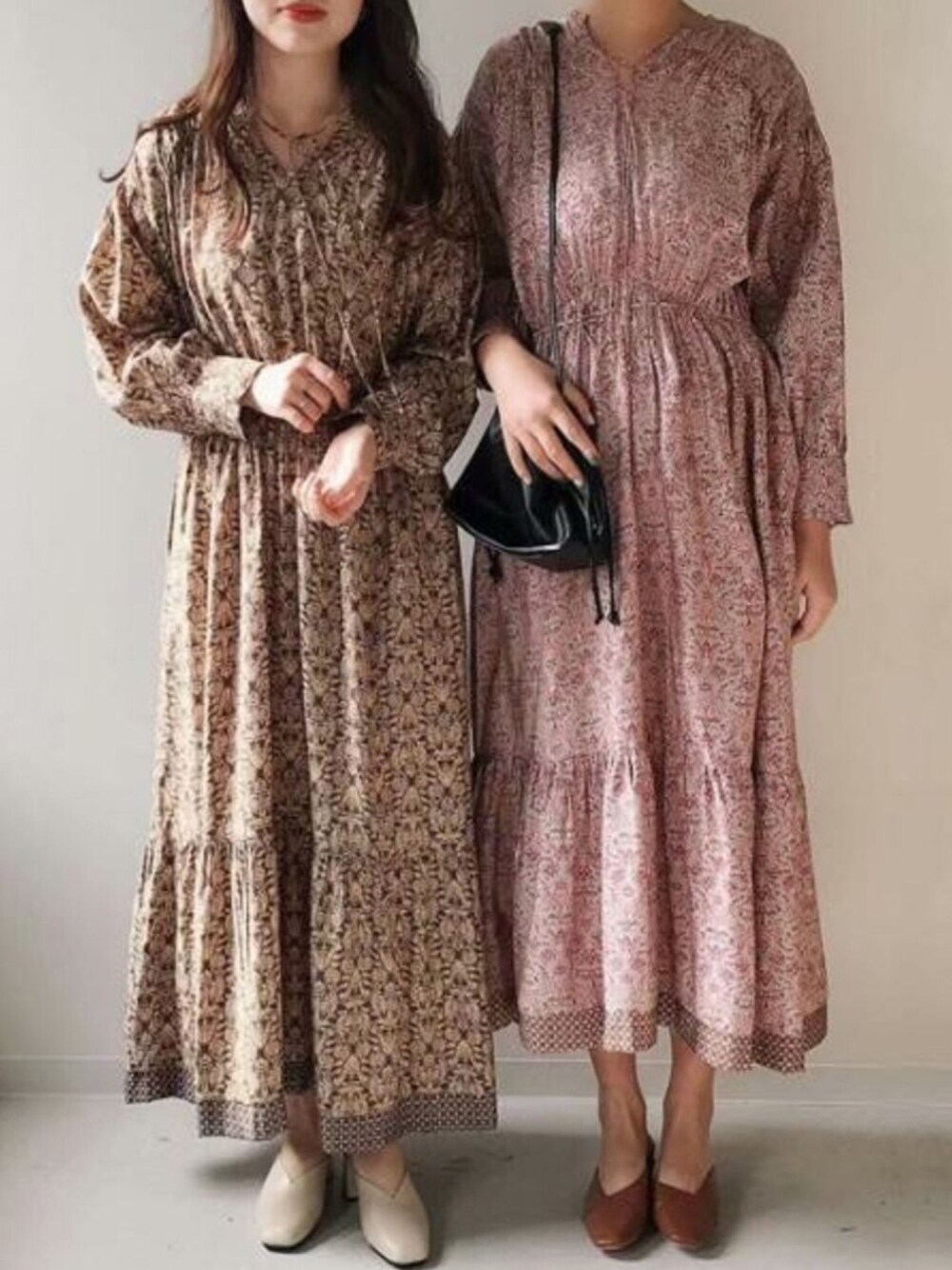 Bou Jeloudのワンピース「【WEB限定】Made in INDIA◆オリエンタル柄ロングワンピース/ウエストリボンフレアギャザーティアードマキシワンピース」を使ったコーディネート