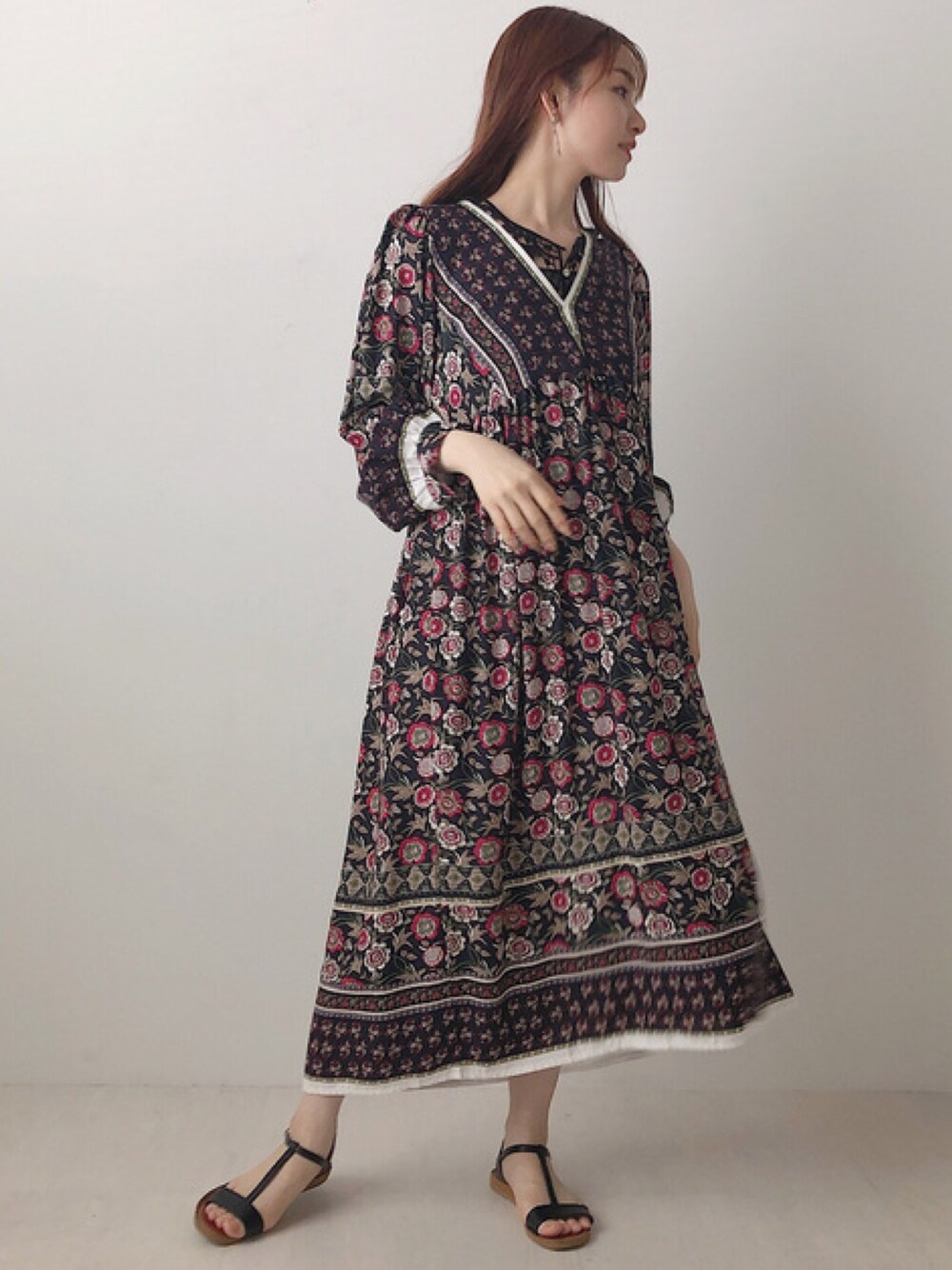 オリエンタルなリラックスムードが漂う、 Babのワンピースです♪ 楽ちんなのに、おしゃれ感を 出しやすいのがワンピースの強み。 1枚でサマになります〜 合わせる小物次第で冬まで着れそう! 首元が深めのVネックになっていて 小顔効果があります! 開きすぎは得意じゃない〜て方は レースタンクを仕込むのがオススメ。 チラ見せが可愛いのです。