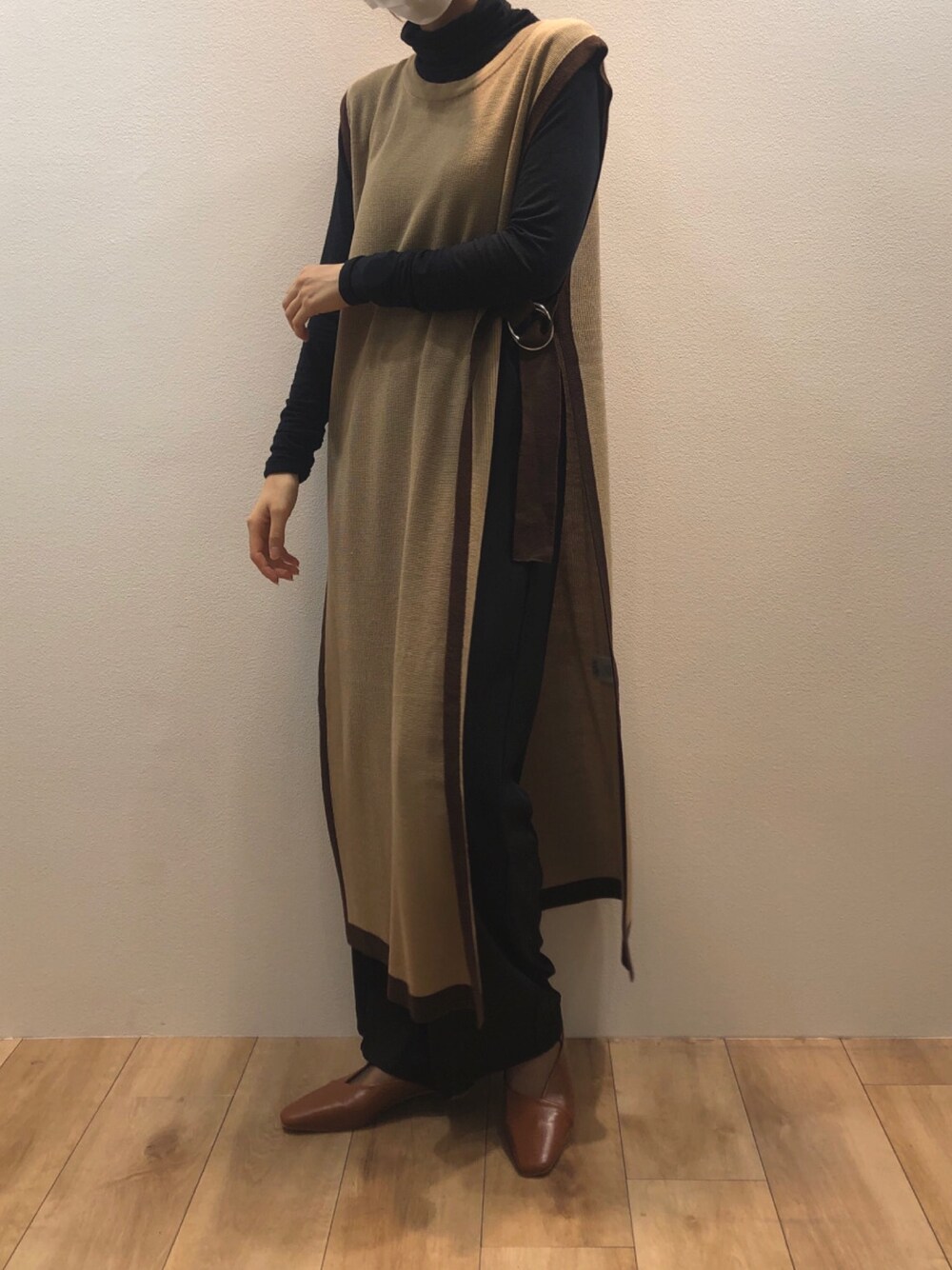 Bou Jeloudのベスト「配色ニットロングベスト」を使ったコーディネート