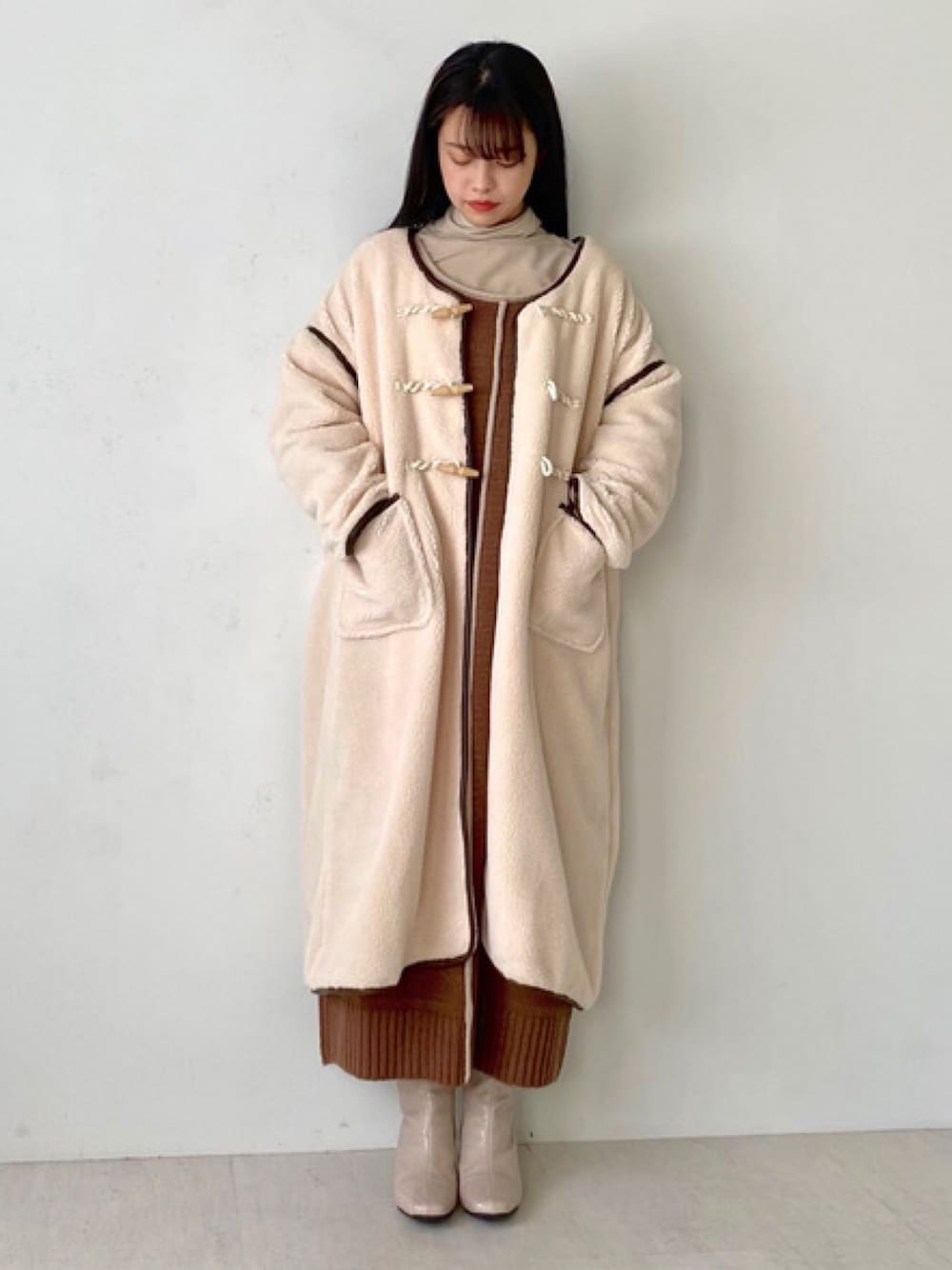 レディライクにも、カジュアルにも着れる万能コート!中に割と袖幅のあるニットを着ていますがゴワゴワしません◎