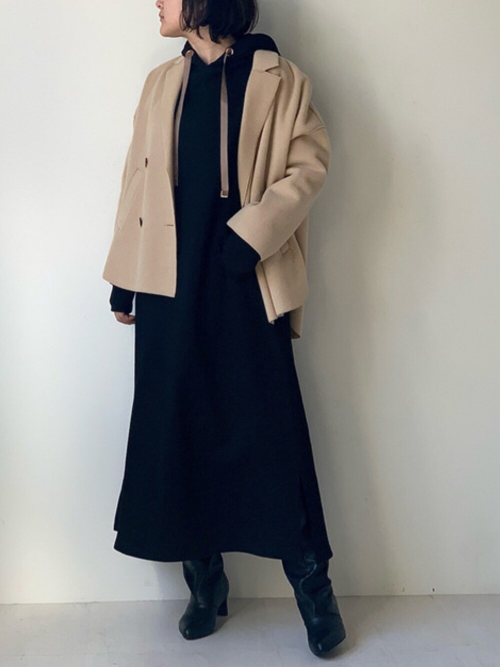 大好きなフードの季節がやってきました! 足元も同色にすると脚長効果があります!