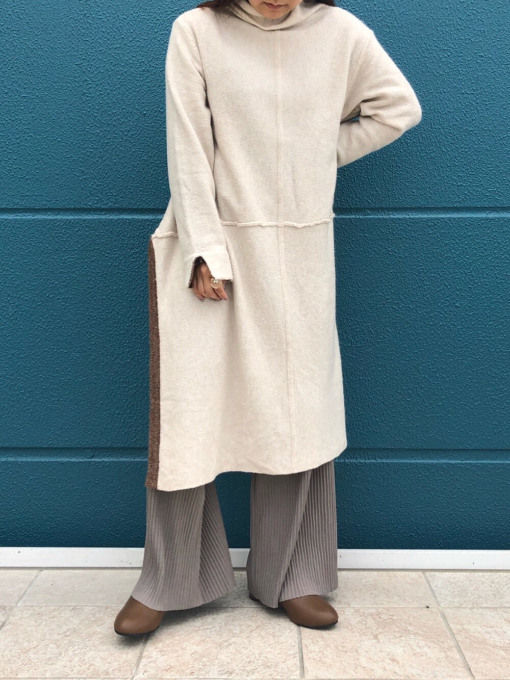 Bou Jeloudのチュニック「センターライン裾配色ニットチュニック」を使ったコーディネート