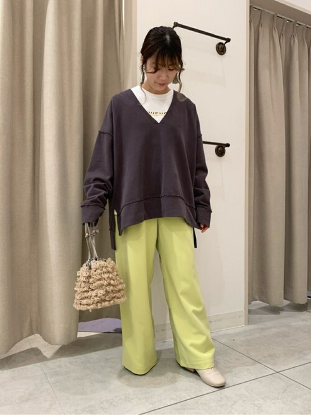 レイヤードスタイルでトレンドコーデ♪ パンツはライムグリーンの色味がとても綺麗なので春の気分になります❤