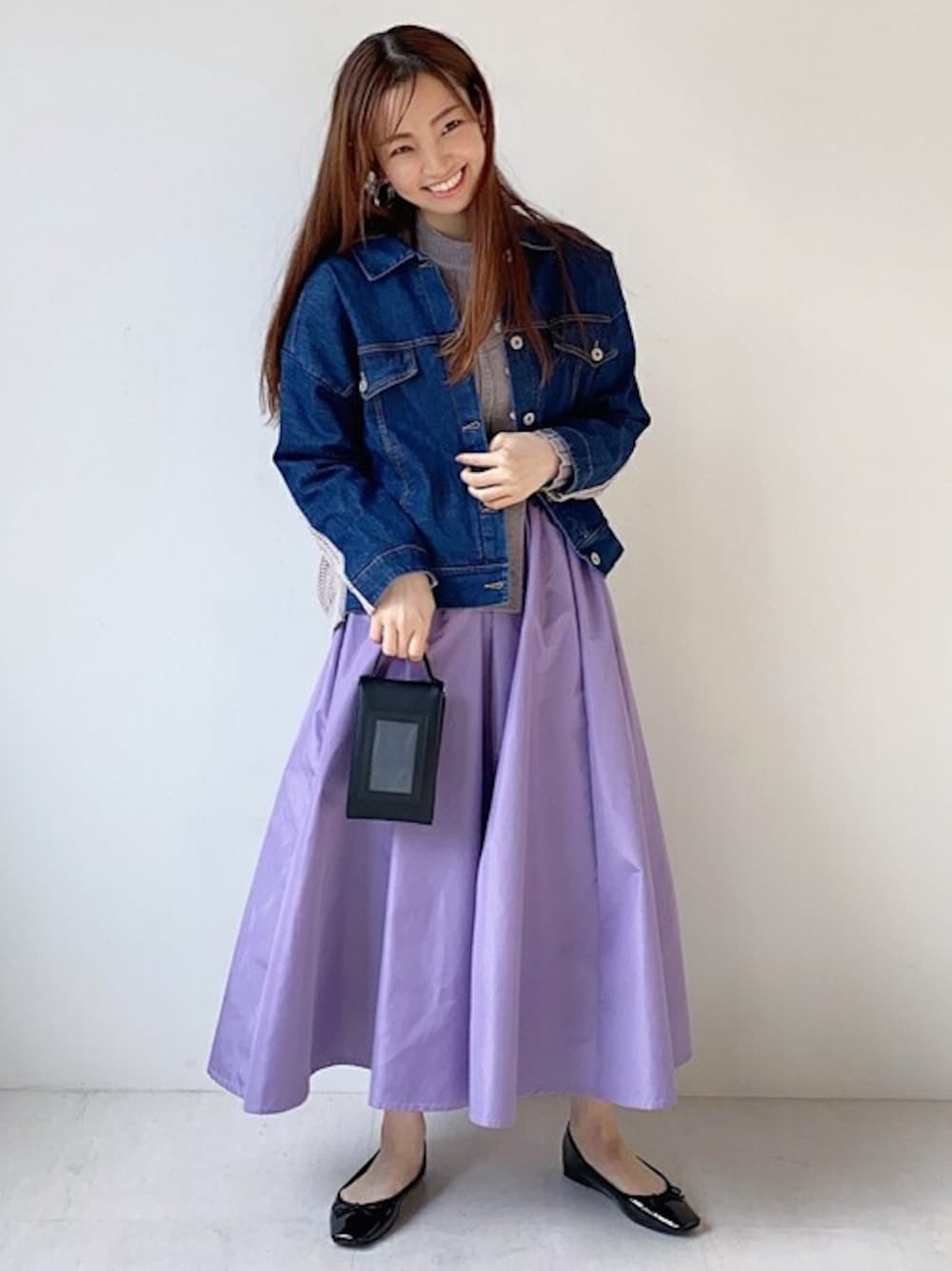 フレア感がとてもリッチなタフタスカート。 やっぱり紫が好きな私。笑 紫の中でもラベンダーが今年の春っぽい。 光沢感のあるフレアスカートが 履けるのもオトナならではですよね♪ そんなきれいめスカートスタイルにも デニムコンビジャケットは大活躍! バックスタイルがニットになることで 程よくカジュアルに仕上がります〜