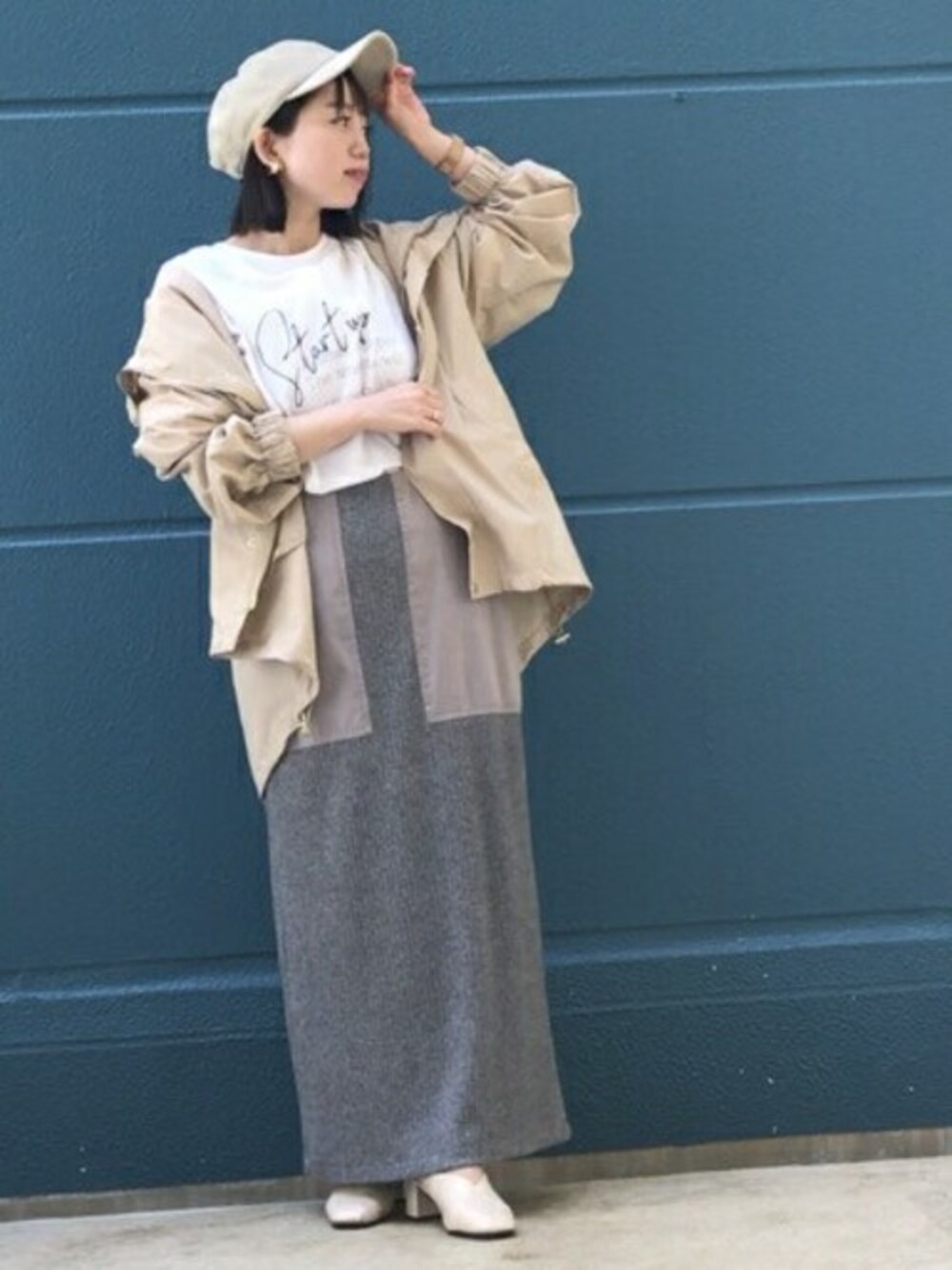 ご覧いただきありがとうございます♡ キャップを使ったカジュアルコーデです! キャップとパーカー、ロゴTとカジュアルアイテム多めなので、スカートはタイトなニットスカートで女性らしさをプラスしました!