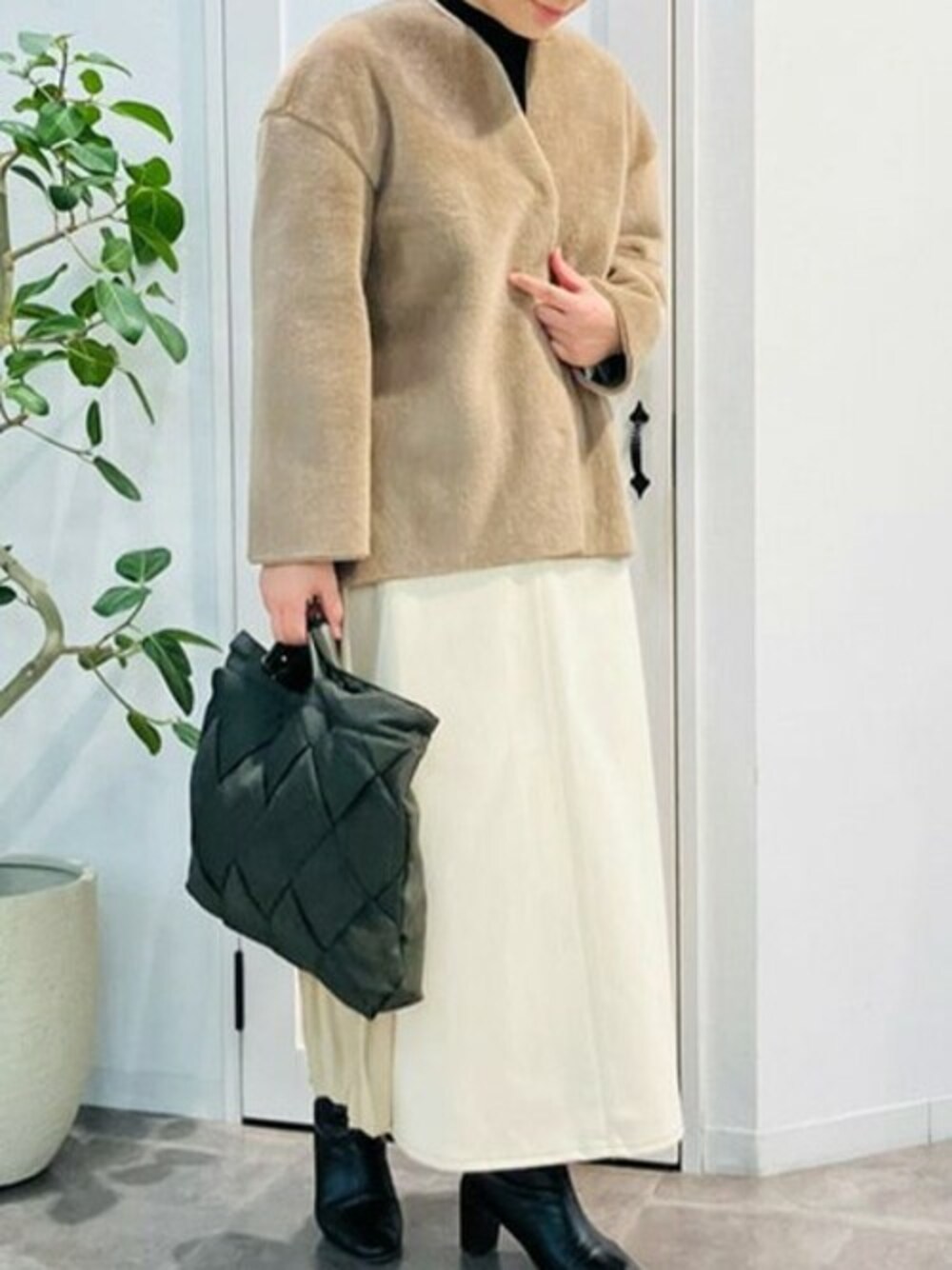 159㎝ エコファーボンディングアウターはとにかく軽くて羽織りやすいです。 アーム部分がゆったりしているので、中に厚手のニットを着ても余裕のサイズ感です。 スカートはウエストゴムでとってもラクチンです。 色違いでほしくなります♪