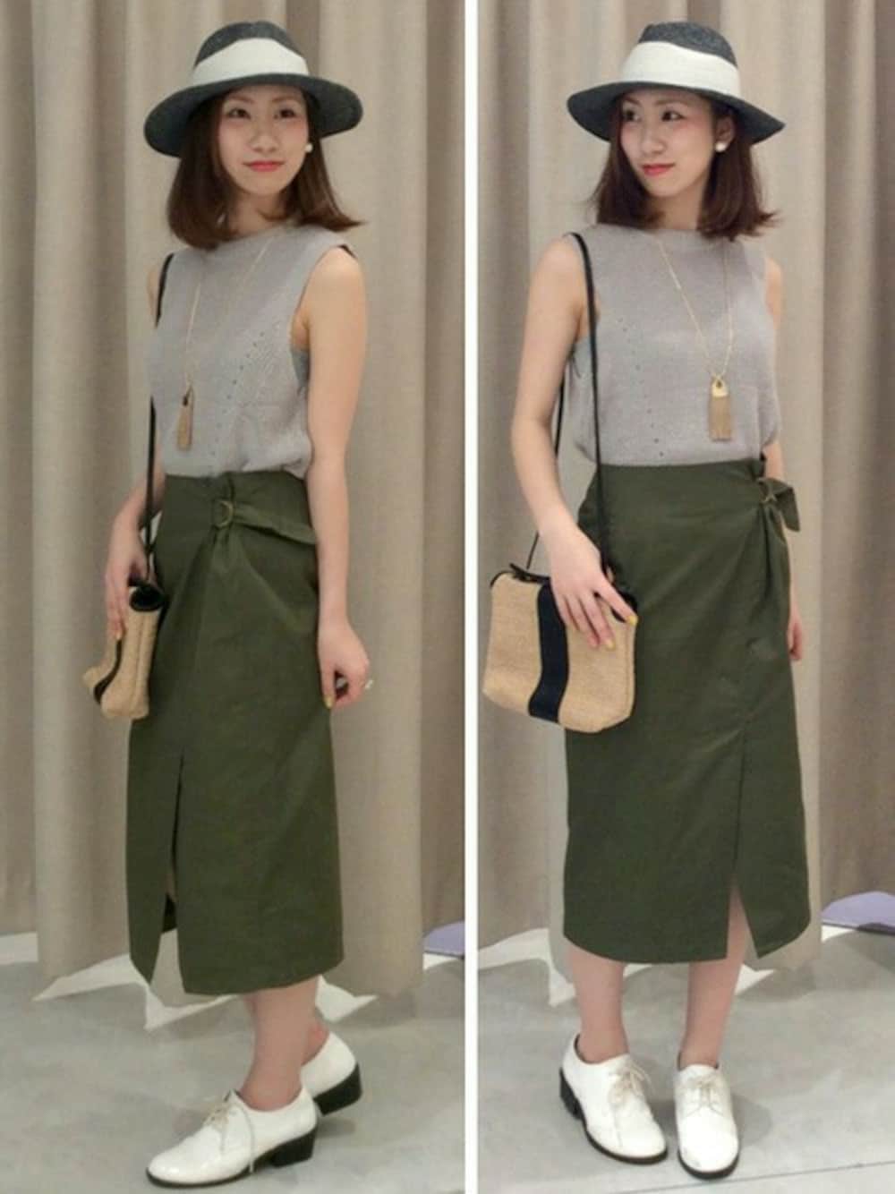CABANA in Bou Jeloudイオンモール筑紫野店スタッフコーデ。 形が綺麗なタイトスカートが入荷しました♪ シンプルなんですが、ポケットやサイドのデザインが さりげなくおしゃれで素敵です♡ ノースリニットをインして涼しげ上品スタイルで 夏を過ごしたいですね♪