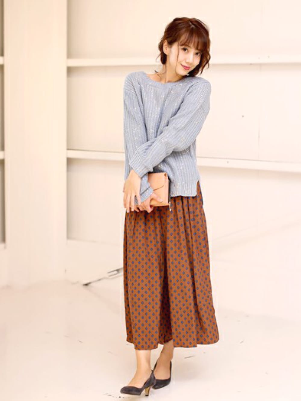 Bou Jeloudのニット/セーター「【WEB限定プライス】箔プリントルーズニットプルオーバー」を使ったコーディネート