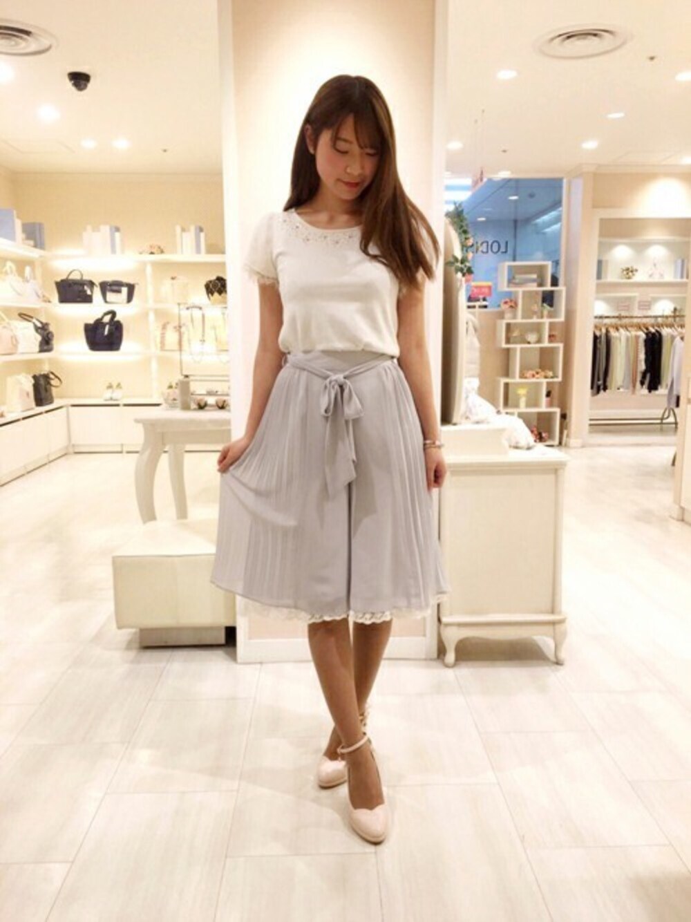 デイリーにもオフィスにも活躍間違いなしのシンプルなコーディネート♪♪ シンプルな中にもビジューやウエストのリボンなどのアクセントが華やかにしてくれます・・・♡