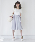 トップスインでIラインを意識したすっきりシルエット。 スカーチョはプリーツが入ったデザインで歩く度に揺れ、上品な雰囲気。 大人なシンプルガーリーです・・・♡♡ トレンチコートを羽織れば更に上品に♪