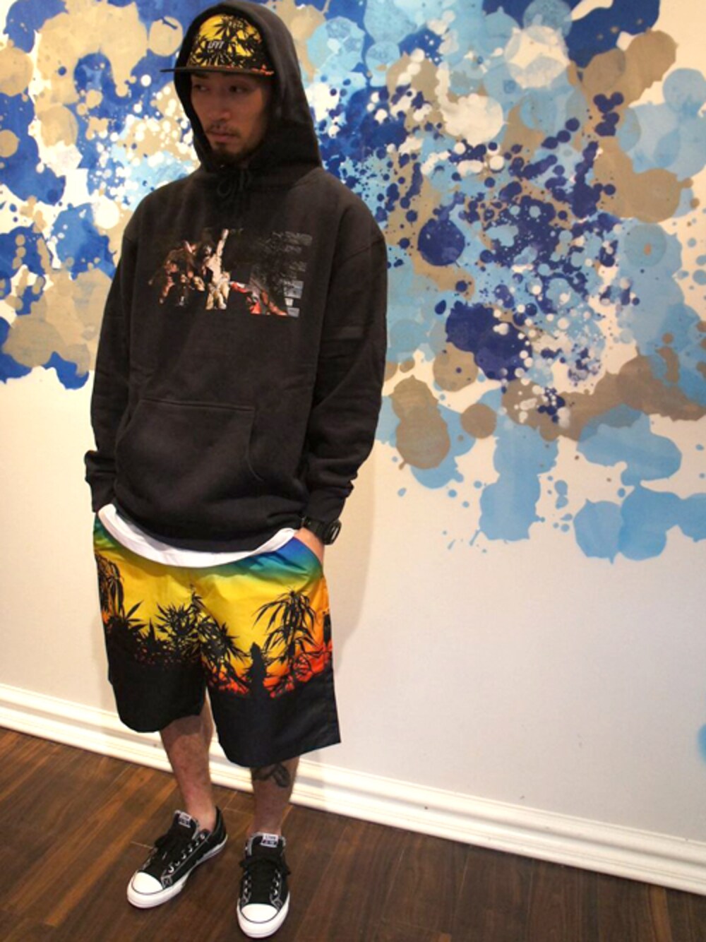 MODEL : YU-YA / 180cm CAP : Lafayette / ALL OVER JET CAP / FREE PARKA : Lafayette / ELEVATION PULLOVER SWEATSHIRT / XL SHORTS : Lafayette / ALL OVER EASY SHORTS / XL Lafayetteの代名詞的デザイン「YORK TOWN」はもちろんですが夏を感じさせる「SUNSET WEED」が個人的に一押し。 このSHORTSは名前の通りのルーズシルエットにナイロン素材が最大の特徴で デザインの魅力を存分に引き出した夏にピッタリな一枚。 ライナーを使用すれば海やプールにと活躍する使用なので濡れてもすぐに乾きコットン素材やデニム素材の濡れた時の嫌な感じも全くないのでこの時期にももってこい。 この時期楽しめるこんな着こなしで是非!! http://zozo.jp/brand/lafayette/ http://www.lafayettecrew.com/