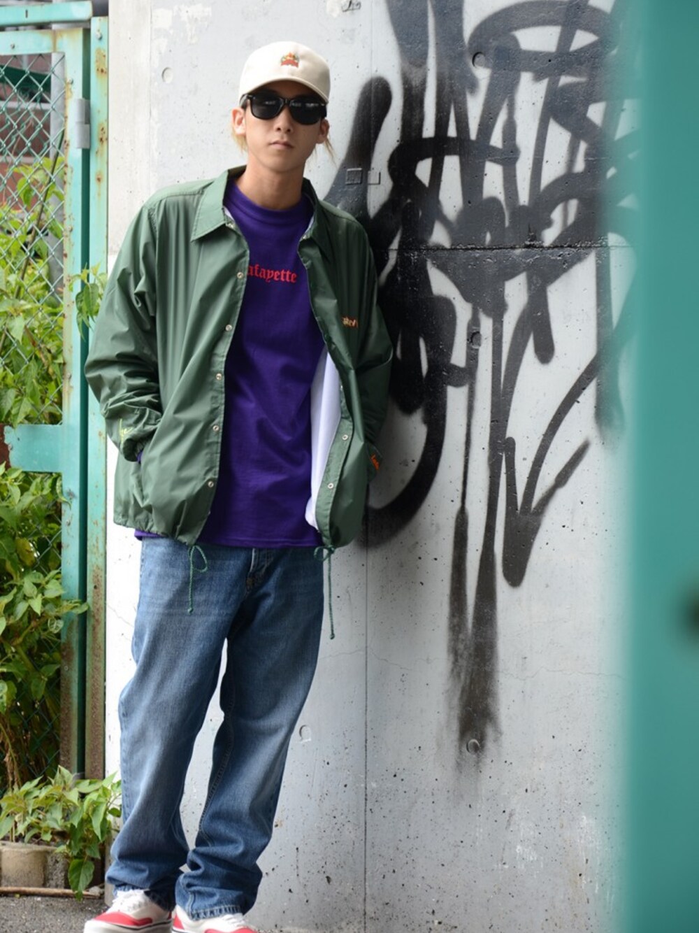 Model : MITSUKI (172cm) ■HEADGEAR Size-FREE Lafayette CREST DAD HAT LFT18AW028 BEIGE ■JACKET Size-M Lafayette × dee FREE ENTRY COACH JACKET LFT18AW013 DARK GREEN ■TOPS Size-M Lafayette × dee BLACK LETTER L/S TEE LFT18AW015 PURPLE ■BOTTOMS Size-W32 CARHARTT MARLOW PANT LIGHT INDIGO I025499-18F ■KICKS Size-9h VANS ERA 95 DX VN-0A2RR1U8Q OG RED