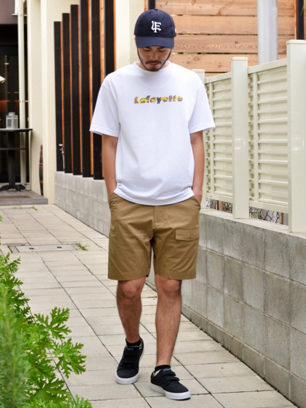 model : MASA CAP: Lafayette ラファイエット LF LOGO NEW ERA 9TWENTY CLASSIC TEE: Lafayette ラファイエット LAFAYETTE FLOWER LOGO TEE / M SHORTS: Lafayette ラファイエット SOLID 5 POCKET TWILL SHORTS / M SHOES: NIKE フラップポケットなどエッジの効いた洗練されたデザインがポイントで、ストリートからハイカジュアルまでスタイルを選ばずに、コーディネイトできる万能ショーツ。 http://zozo.jp/brand/lafayette/ http://www.lafayettecrew.com/