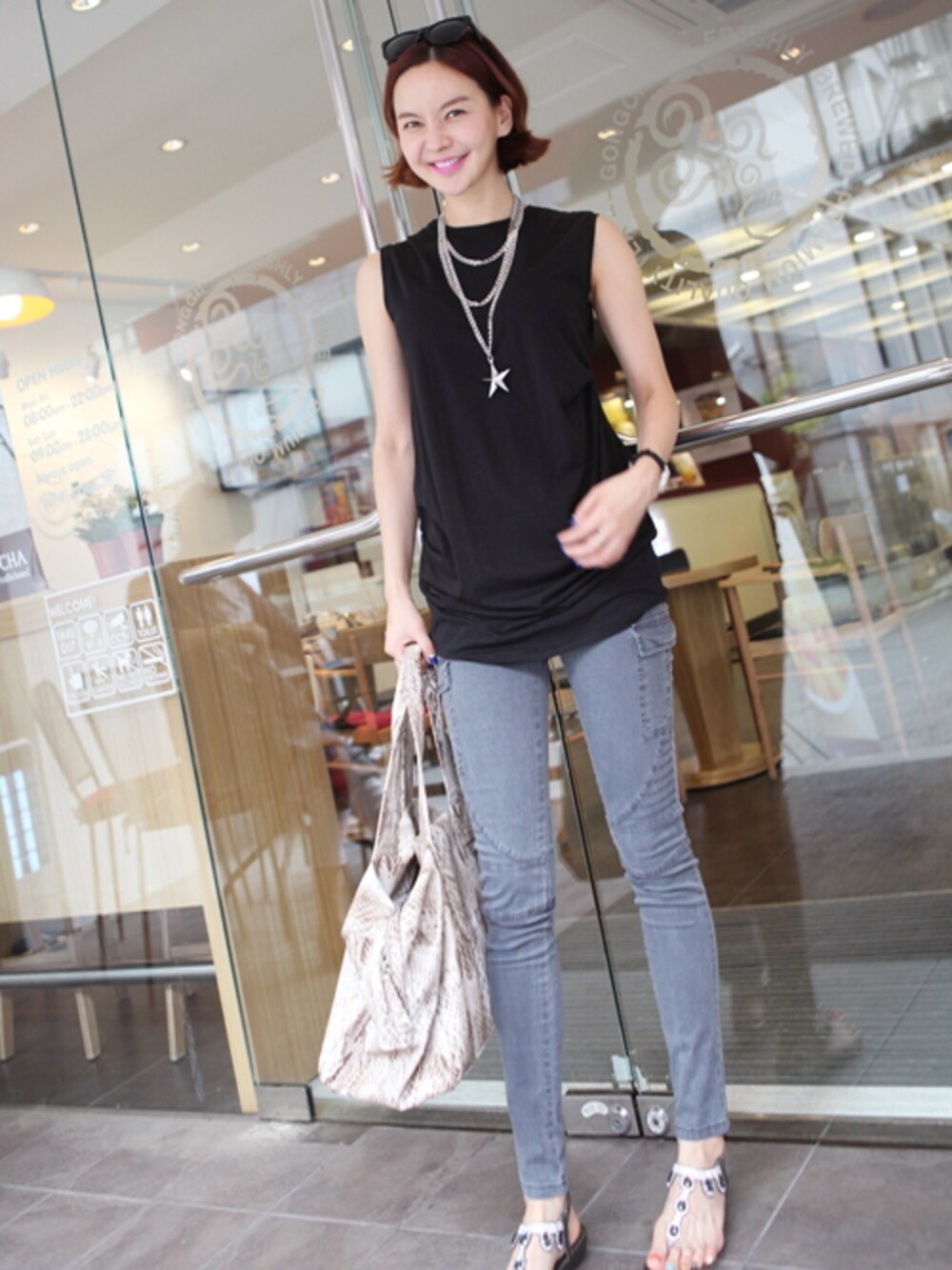 伸縮性のあるコットン混紡素材を使ったロング丈トップスです。 ドレープ感のあるサイドシャーリングがワンポイントに☆ ヒップが隠れる丈で体型カバー力も抜群! キャップ袖風アームホールがお洒落なシンプルタンクトップ♪ ★送料1,200円、9,000円以上で送料無料 ★新規会員200円クーポン支給 サイトはこちら↓ http://jp.lemite.com/