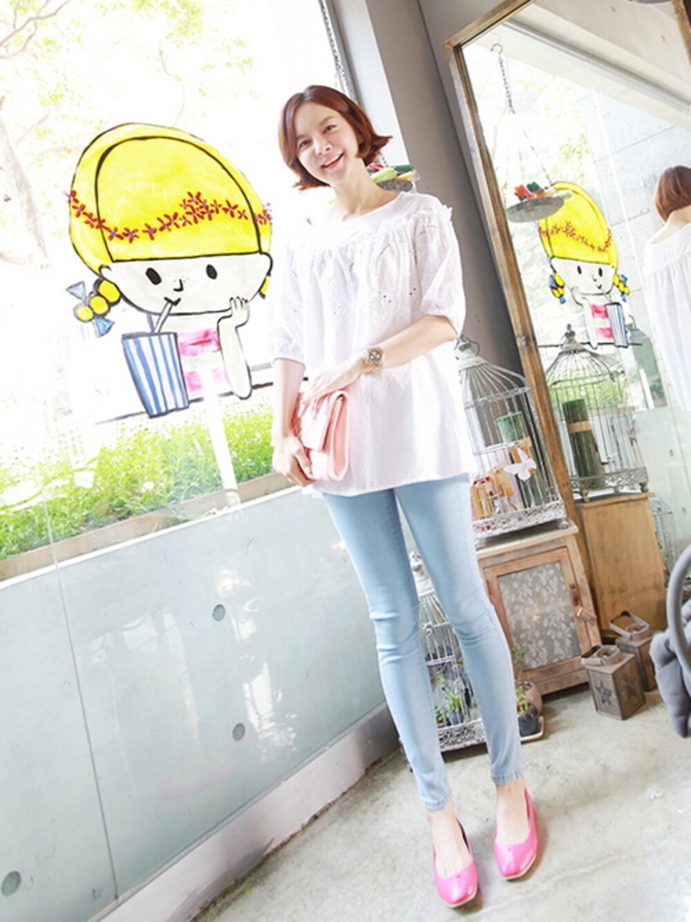 伸縮性のないコットン素材を使ったボートネックブラウスです。 バストラインのフリルとパンチングディテールがフェミニンなアイテム☆ ヒップが隠れるふんわりとしたシルエットで体型カバー力も抜群♪ ゴムバンド入りの7分袖でボリューム感をプラスしたホワイトブラウス! ★送料1,200円、9,000円以上で送料無料 ★新規会員200円クーポン支給 サイトはこちら↓ http://jp.lemite.com/