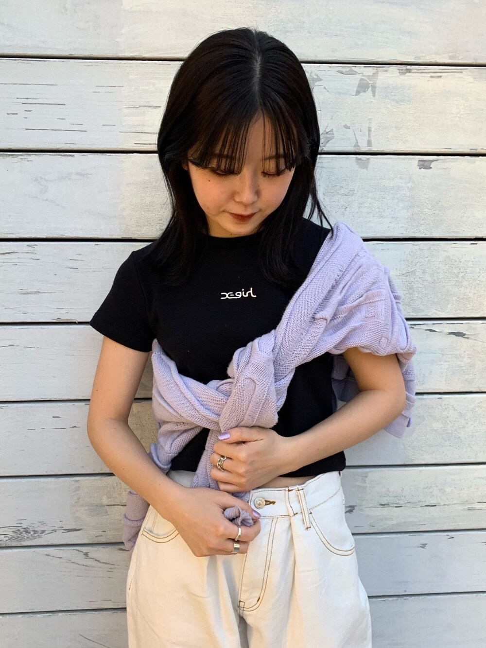 高平舞菜(XLARGE/X-girlルミネエスト新宿(X-girl))のTシャツ/カットソー「EMBROIDERED MILLS LOGO S/S BABY TEE」を使ったコーディネート