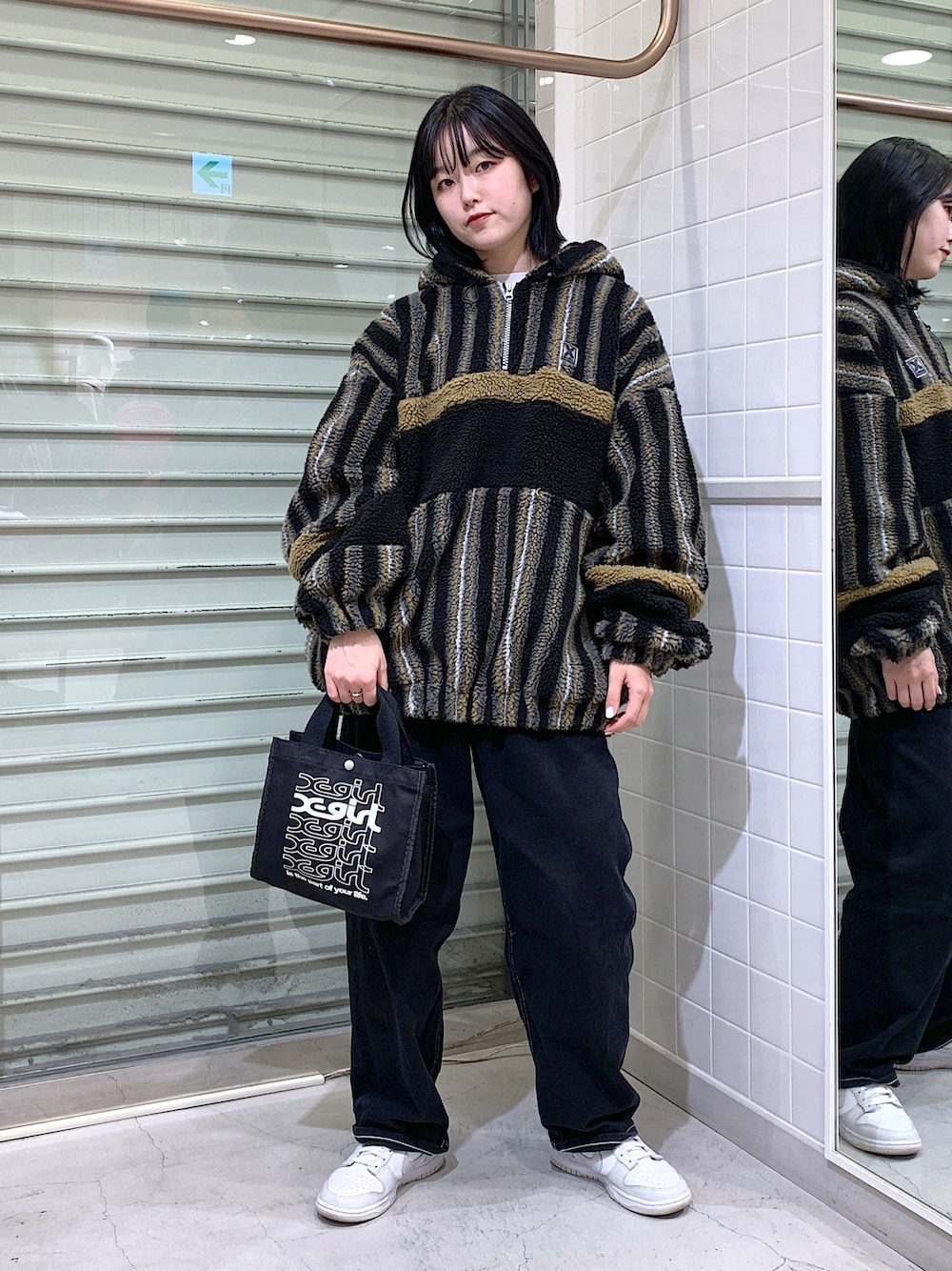高平舞菜(XLARGE/X-girlルミネエスト新宿(X-girl))のブルゾン「CONTRAST PANEL FLEECE BOA HOODIE」を使ったコーディネート