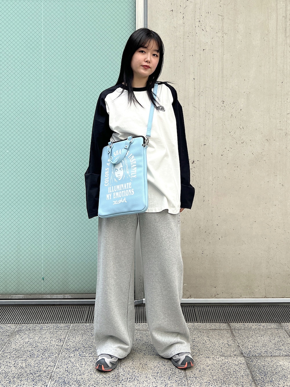 高平舞菜(XLARGE/X-girlルミネエスト新宿(X-girl))のショルダーバッグ「ARCH & FACE LOGO PC CASE」を使ったコーディネート