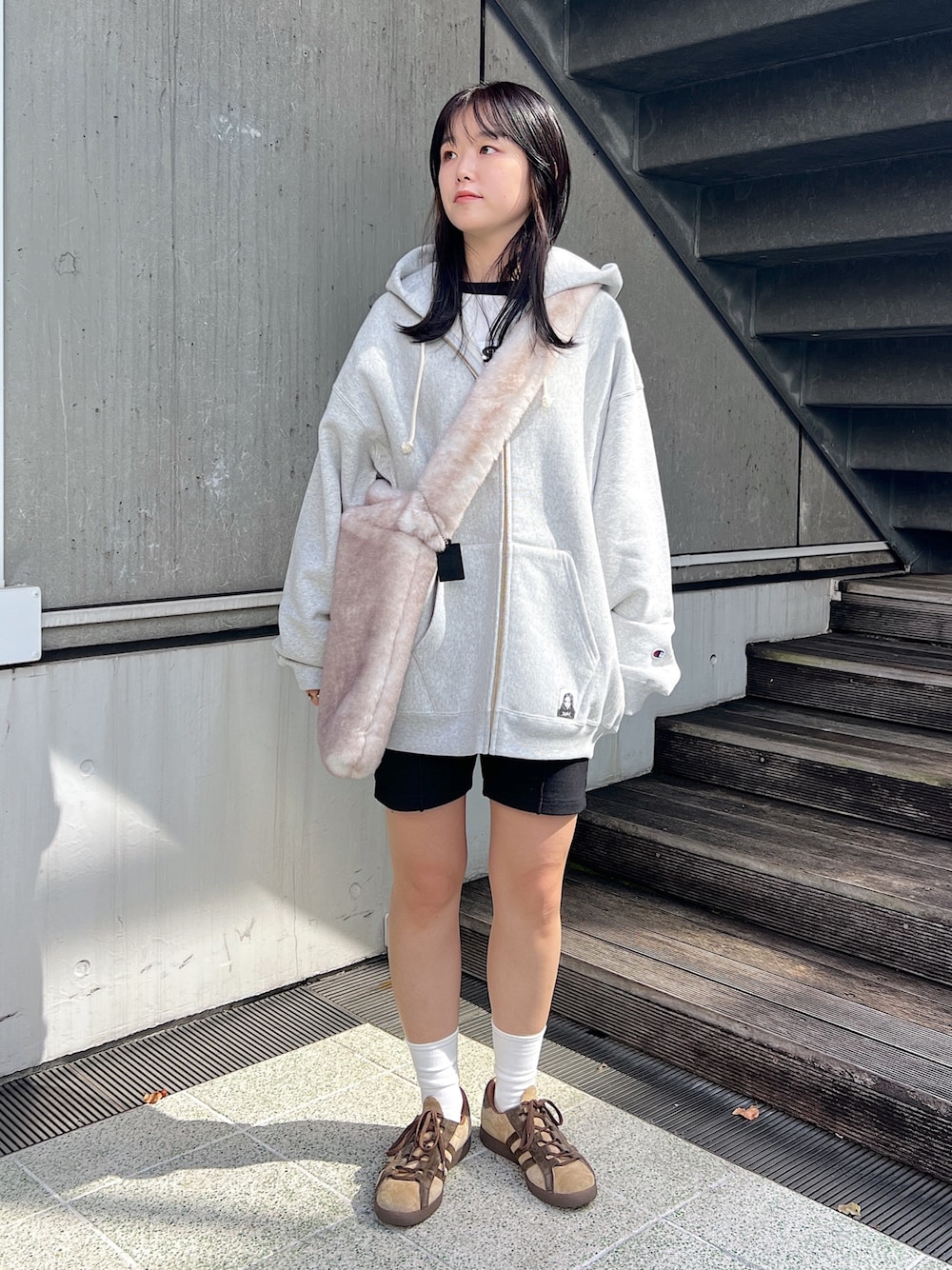 高平舞菜(XLARGE/X-girlルミネエスト新宿(X-girl))のパーカー「X-girl × Champion REVERSE WEAVE R ZIP UP HOODIE」を使ったコーディネート