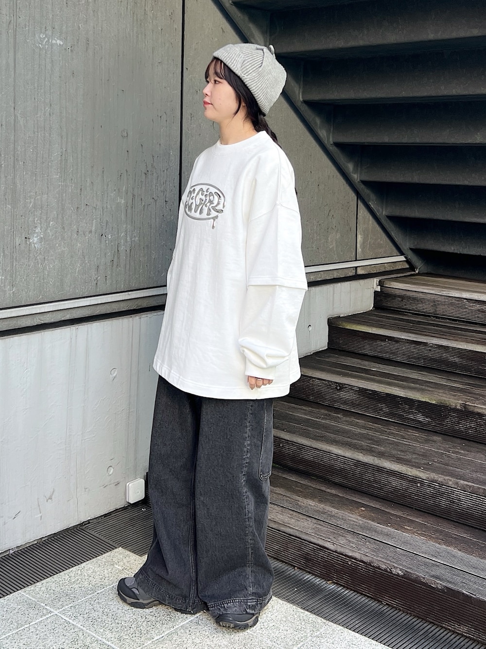 高平舞菜(XLARGE/X-girlルミネエスト新宿(X-girl))のスウェット「METALLIC LOGO LAYERED SWEAT TOP」を使ったコーディネート