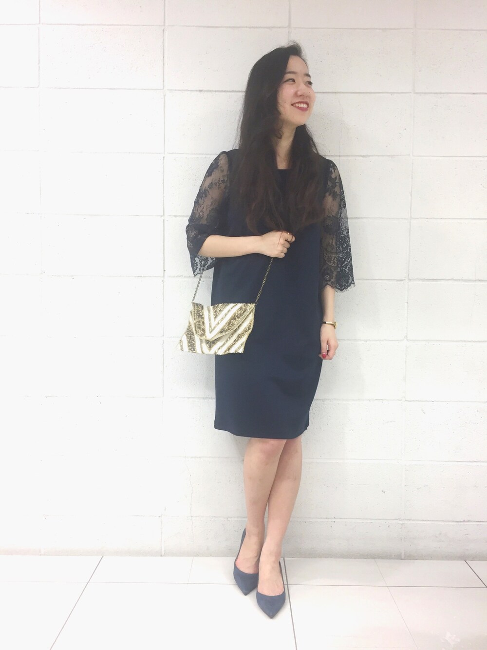 ままちゃんのワンピース「袖レースジャージーワンピース」を使ったコーディネート