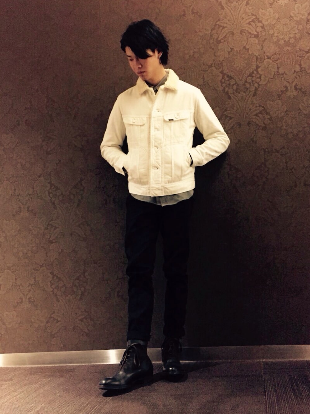 本日は新作のコンバットブーツとボアジャケットで先取り冬コーデです! 男らしいアイテムの合わせでもジャケットをホワイトにすることで、男臭くなり過ぎずオススメです。 シャツを挟んで大人っぽくまとめました。 またこちらのブーツ、スムースレザーとスエードレザーを大胆に切り替えたデザインになっており、季節感とアクセントをスタイリングにプラスできます。 違う素材も同じダークトーンでまとめているので、非常にコーディネートしやすいのもポイントです! 是非お問い合わせください! 品番:5211005002 価格:¥43,000(税抜) ボアジャケットはABAHOUSEの新作、LEE別注STORM RIDERです! 防寒性も着心地も抜群ですよ! 是非合わせてご覧くださいませ!