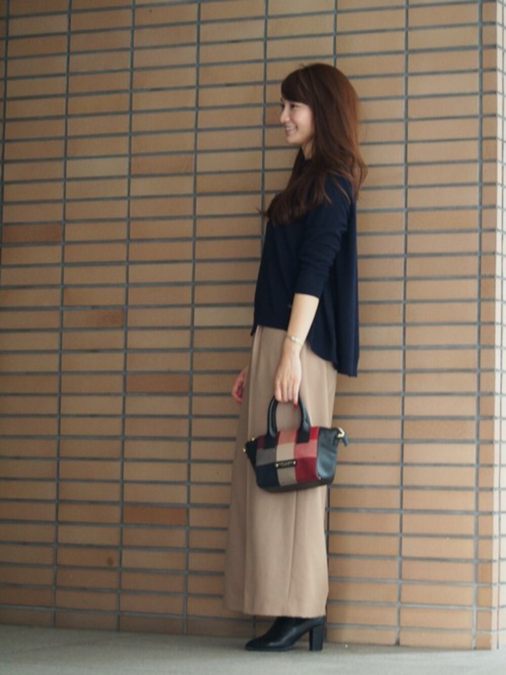 シンプルなニットは後ろが長くなっているところがポイント☆ トレンドのワイドパンツを合わせて大人女子コーデ♪
