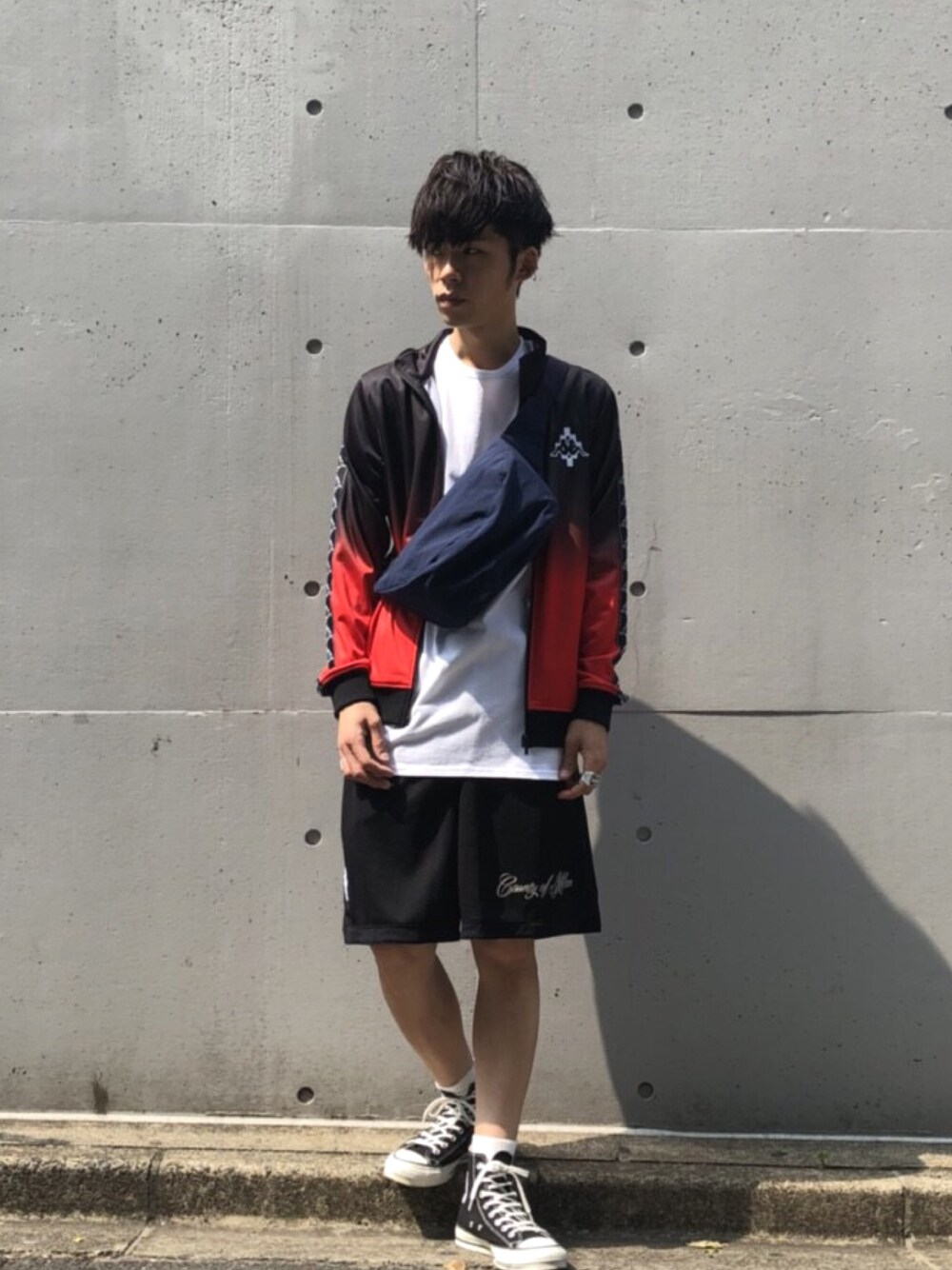 MIDWEST_ECのボディバッグ/ウエストポーチ「PATRICK STEPHAN “demi cercle”ナイロンボディバッグ」を使ったコーディネート