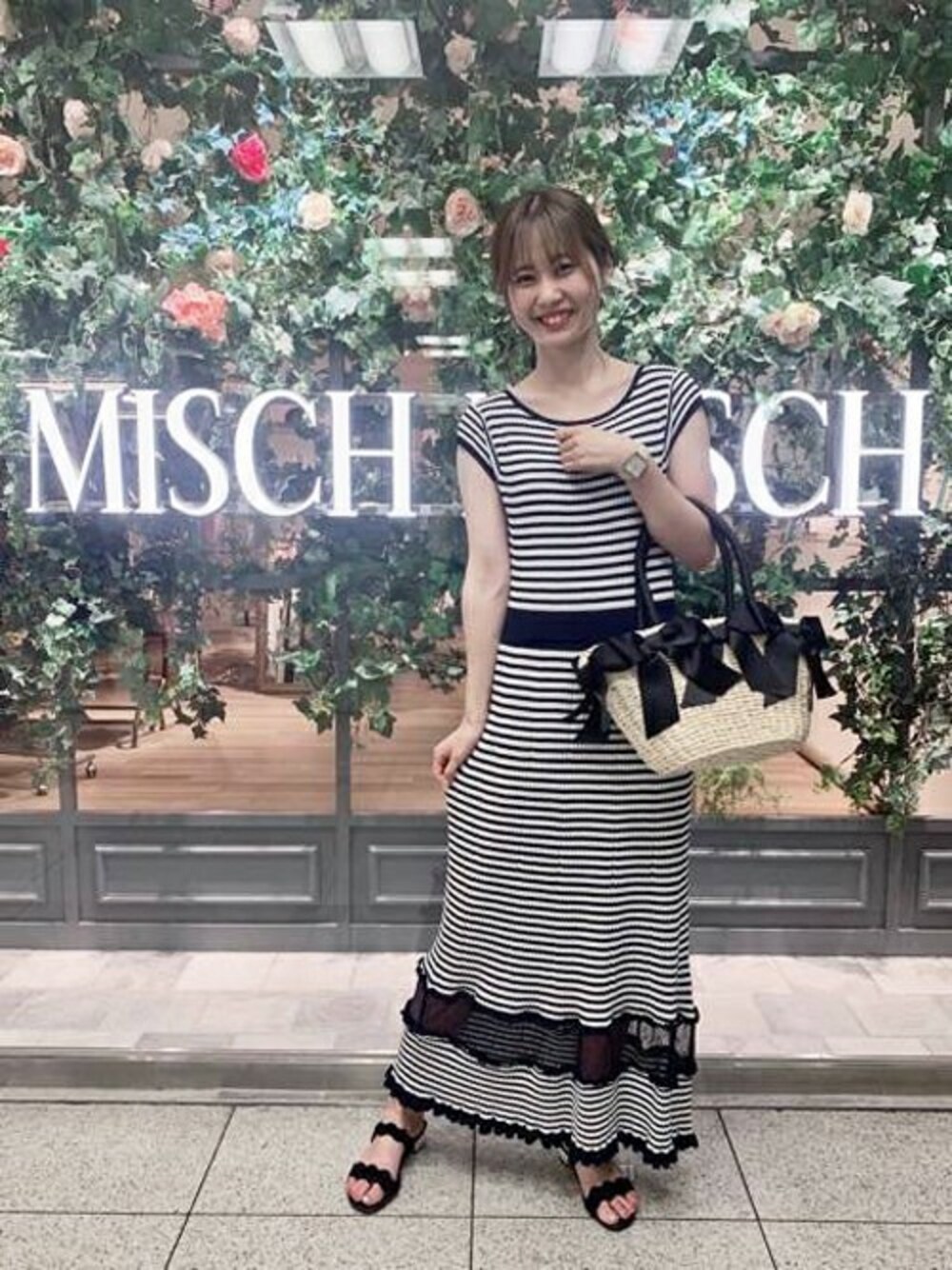 MISCH MASCHのかごバッグ「リボン&パールかごバッグ」を使ったコーディネート