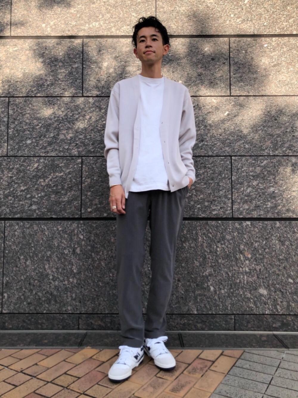 【身長】186cm 【普段のサイズ】LまたはXL 【素材感】 カーディガン:細かな凹凸感のあるミラノリブの編み地で、やや肉厚な素材です。 ボトムス:立畝組織のジャージ素材で、生地の裏面に起毛加工を施しており、肌触り良くもっちりとした素材感です。 【サイズ感】 トップス:標準 ボトムス:スリム 【着心地】 トップス:軽く柔らかな着心地です。 ボトムス:伸縮性も富み、リラックスした着用感です。 【コーディネートポイント】 スタンダードな装いですが、柔らかく快適な素材を組み合わせた、リラックス感溢れるコーディネートです。イエナカ、外出共に是非お勧めです。